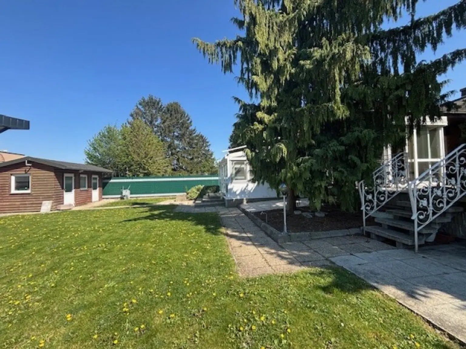 Der Außenbereich profitiert maßgeblich von der Ecklage des Grundstücks, die ein offenes und zugleich geschütztes Wohngefühl schafft. Der Garten ist sonnig, großzügig angelegt und bietet vielfältige Nutzungsmöglichkeiten – von entspannten Stunden im Grünen bis hin zu individuellen Gestaltungsideen. Ergänzt wird das Platzangebot durch eine Garage mit rund 16 m² sowie ein Nebengebäude für Gartengeräte und zusätzliche Abstellflächen.