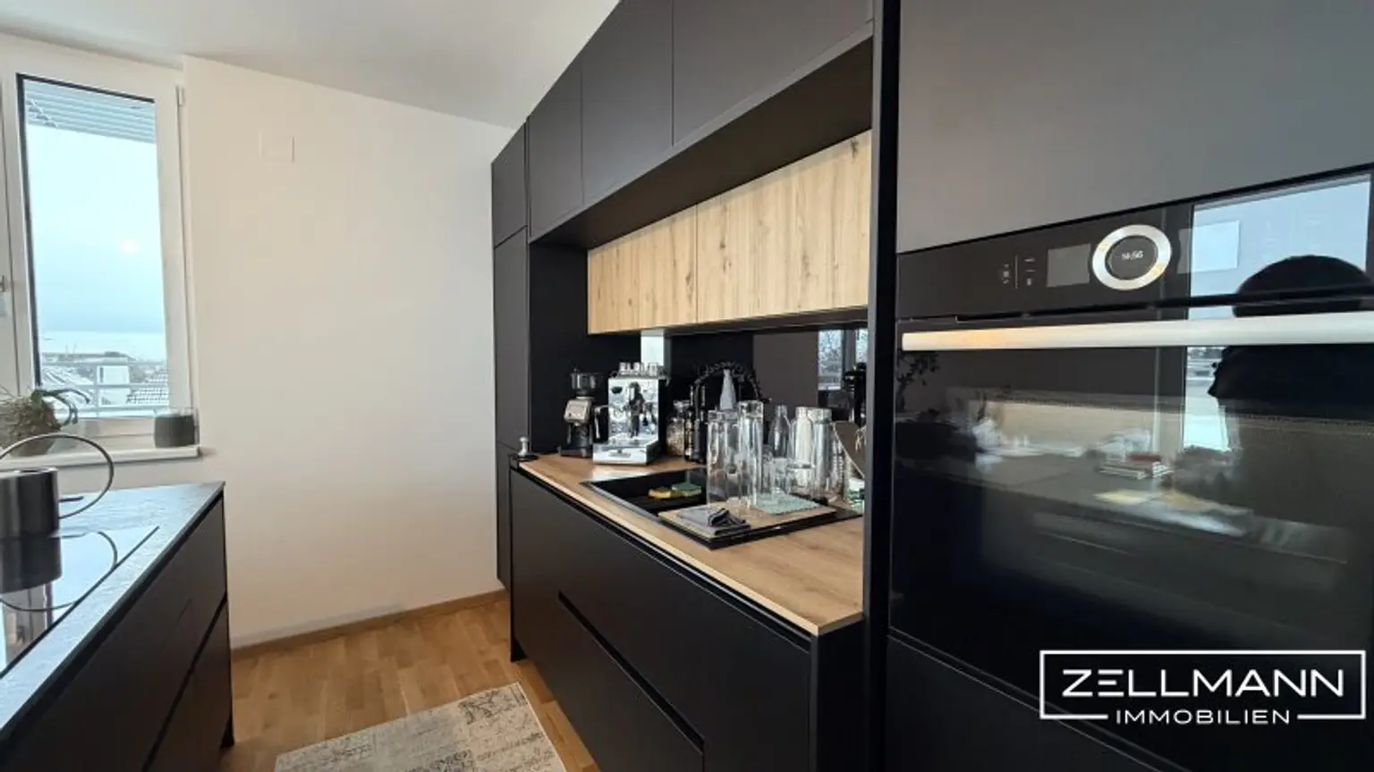 Ausstattung auf hohem Niveau Die Wohnung überzeugt durch eine ausgesprochen hochwertige Ausstattung. In sämtlichen Wohnräumen ist edler Eichenparkettboden verlegt, der ein warmes, zeitloses Ambiente schafft. Bad und WC präsentieren sich mit großformatigen, modernen Fliesen, klaren Linien und zeitgemäßer Sanitärausstattung. Dreifach verglaste Kunststofffenster mit außenliegenden Aluminium-Deckschalen gewährleisten exzellenten Wärme- und Schallschutz, während außenliegende Jalousien mit Sichtblende Komfort, Privatsphäre und effektiven Sonnenschutz bieten.