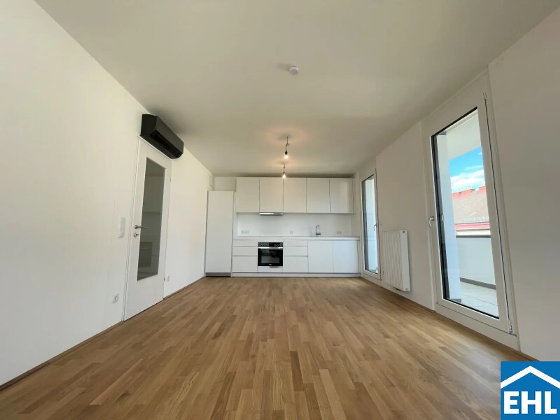 Die Wohnung befindet sich im ersten Dachgeschoss des 2022 fertiggestellten Neubauprojekts und ist durch die Ecklage und die Ausrichtung nach Osten wie auch Süden lichtdurchflutet und bietet insgesamt sechs Zugänge zur 21m² großen Terrasse. Gegliedert ist die klimatisierbare Wohnung in einen zentralen Vorraum von dem aus sowohl das Badezimmer mit Badewanne, das separate WC, der Abstellraum mit Waschmaschinenanschluss sowie das Schlafzimmer und die gut aufgeteilte Wohnküche zugänglich sind.