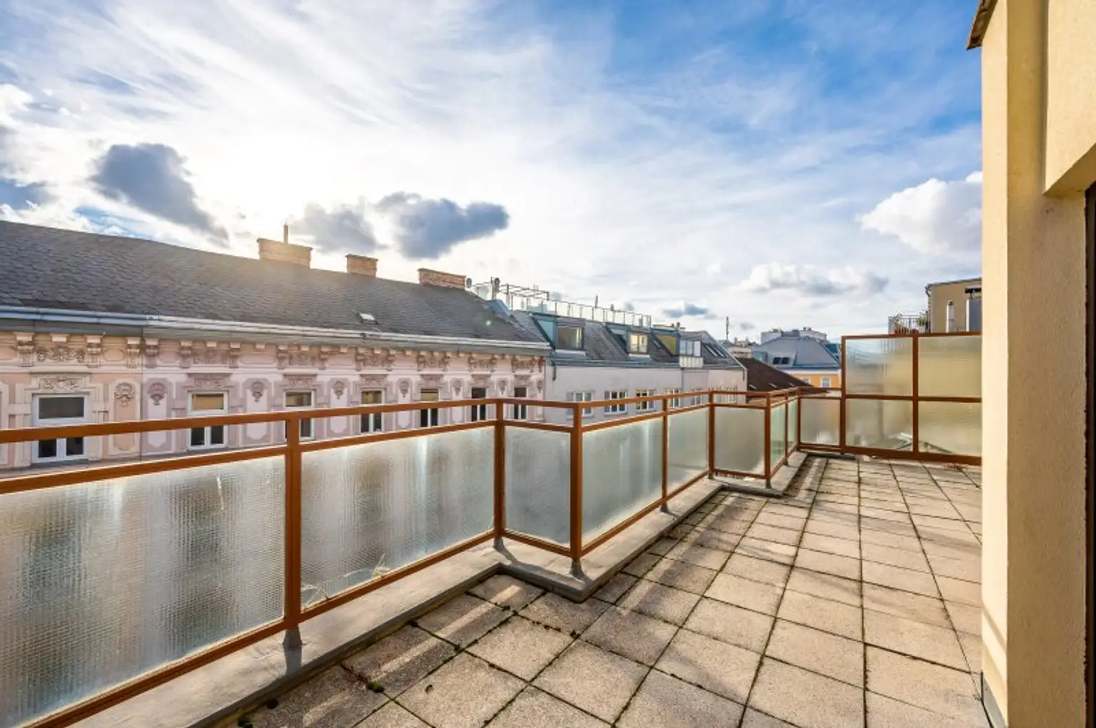 Zum Verkauf steht eine geräumige Dachgeschoss-Maisonette mit ca. 106 m² Wohnfläche und zwei großen, südseitig ausgerichteten Terrassen (je ca. 22 m²) in sehr guter Lage des 9. Bezirks. Die Wohnung befindet sich in einem Neubau aus dem Jahr 1977. Sie wurde stets gut gepflegt, entspricht jedoch nicht mehr den heutigen Standards, was dem neuen Eigentümer die Chance bietet, das neue Zuhause nach eigenen Wünschen zu gestalten. Die Infrastruktur ist hervorragend, alle Geschäfte des täglichen Bedarfs sowie öffentliche Verkehrsmittel sind fußläufig erreichbar.