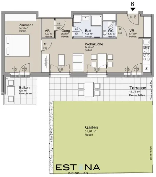 - 2- bis 4-Zimmer-Eigentumswohnungen mit Balkon, Loggia, Terrasse oder Eigengarten