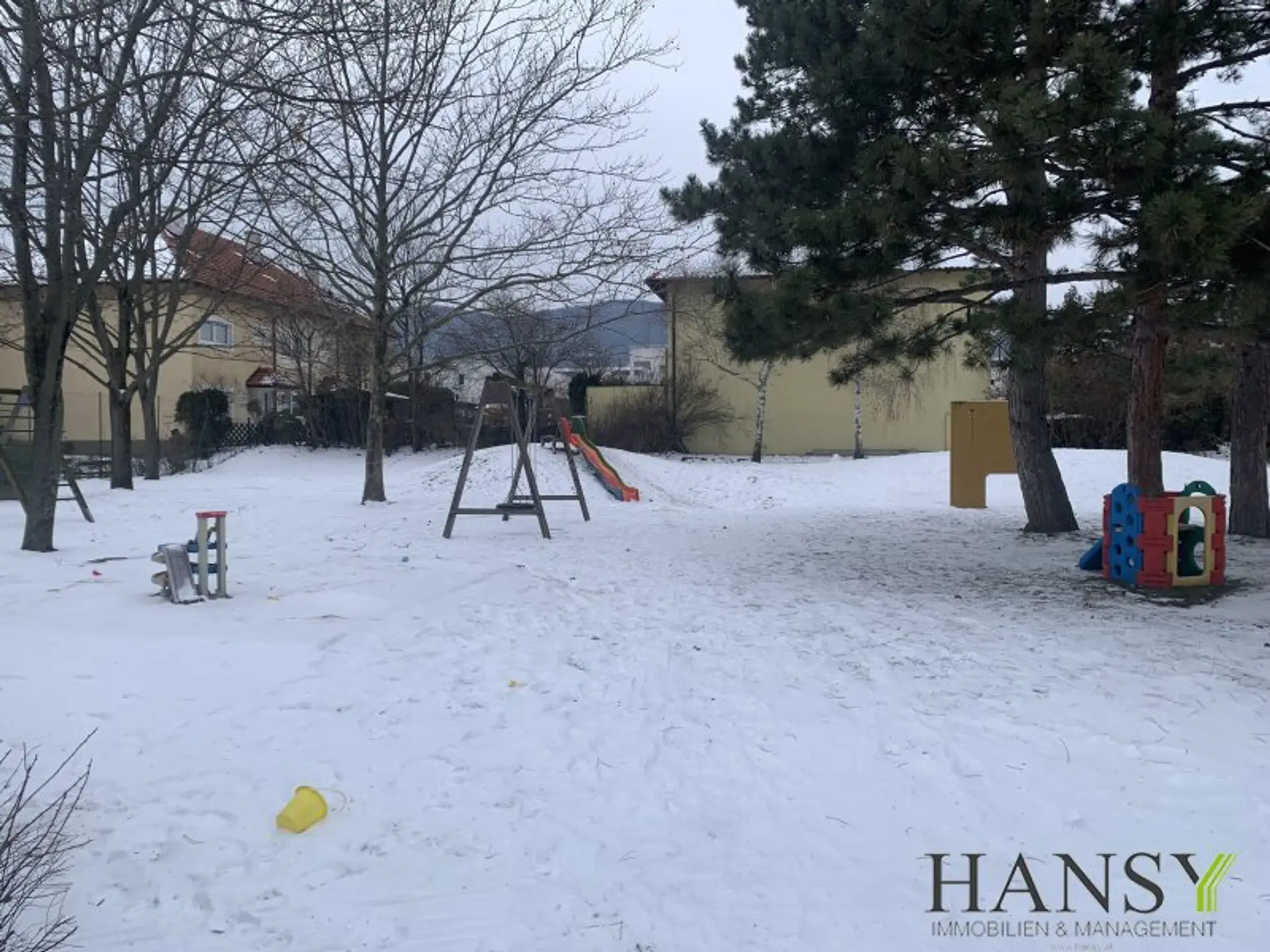 Die ordentliche Wohnanlage bietet gemeinschaftliche Grünflächen, einen Kinderspielplatz und ausreichend Freiraum für Erholung und Begegnung.