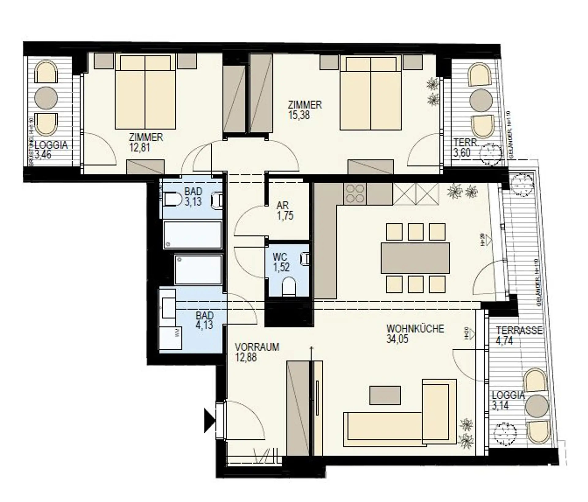 Die Wohnung besticht durch ihre hochwertige Ausstattung und ihren neuwertigen, erstklassigen Zustand, da sie sich derzeit im Erstbezug befindet. Geplant für das Jahr 2026, überzeugt das moderne Design sowohl durch Funktionalität als auch durch Ästhetik. Die Böden sind mit edlem Parkett ausgestattet, das die Wohnräume mit einer warmen, einladenden Atmosphäre versieht. Dank bodentiefer Fenster sind die Räume lichtdurchflutet, was zusätzlich zu einem angenehmen Wohngefühl beiträgt.