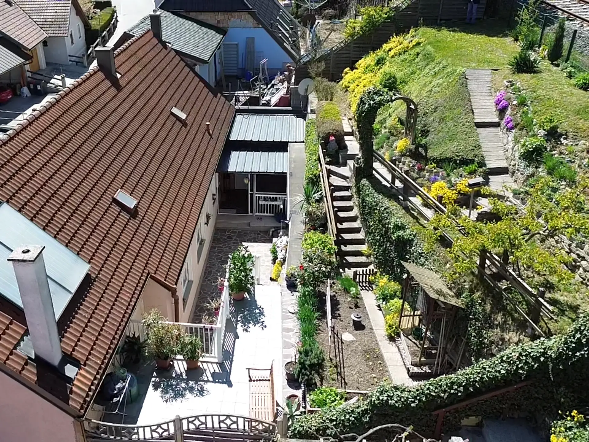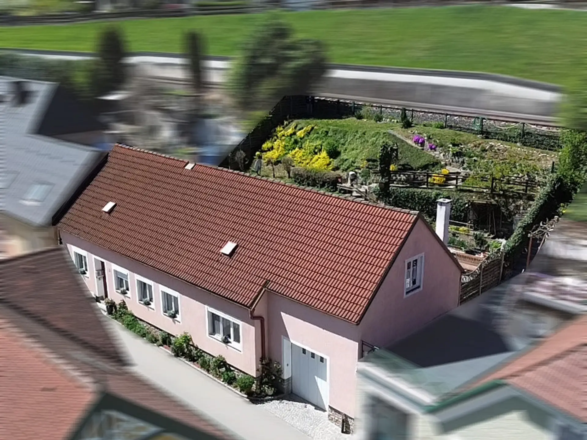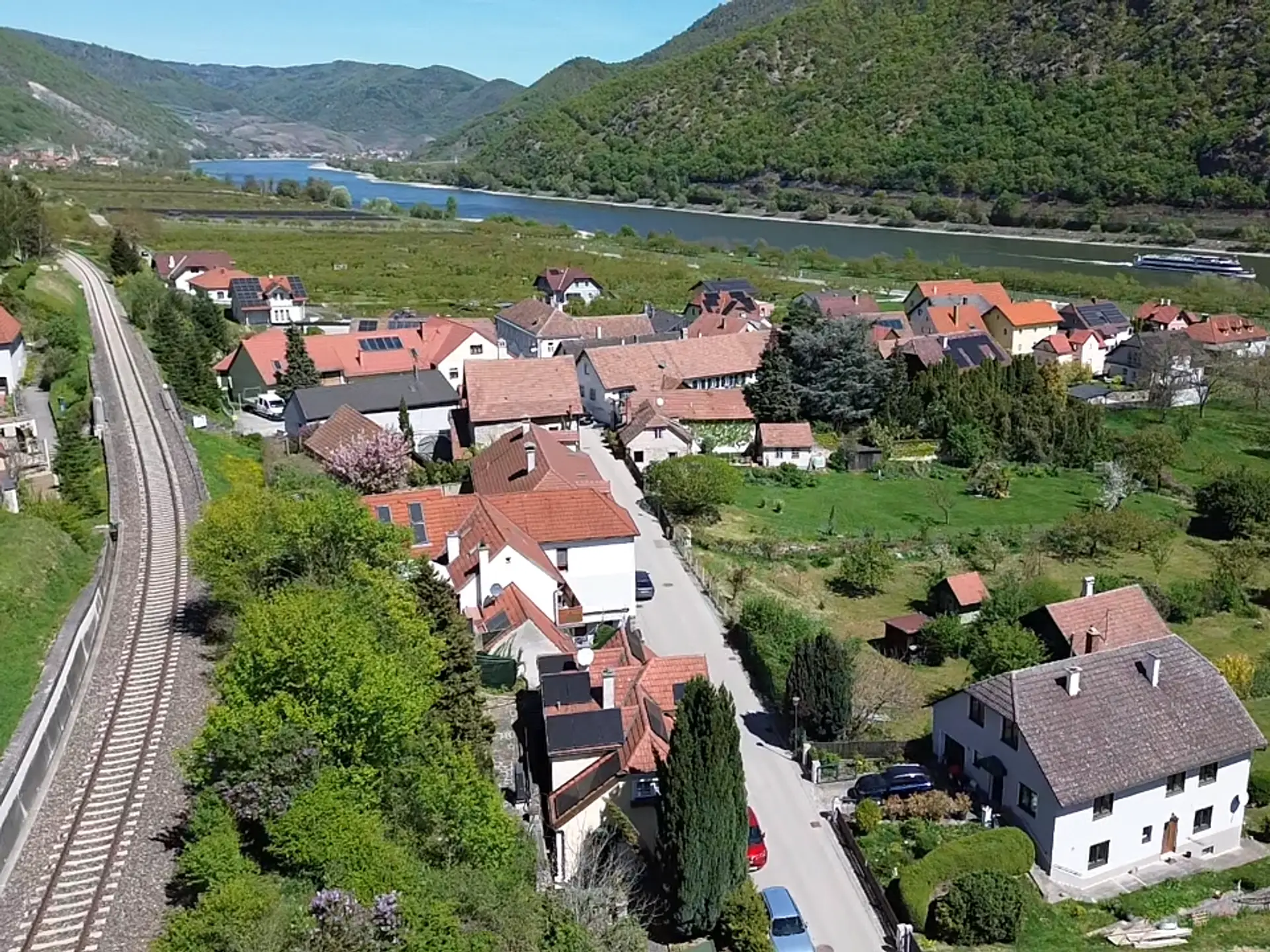 Highlight ist aber der Ausblicks vom liebevoll gestaltetem Garten, der auch jenen auf die Donau miteinschließt - siehe Fotos und vor allem die Videos unter den "Links". Weiters liegt das Haus in geschütztem Abstand zur Hauptverkehrsroute!