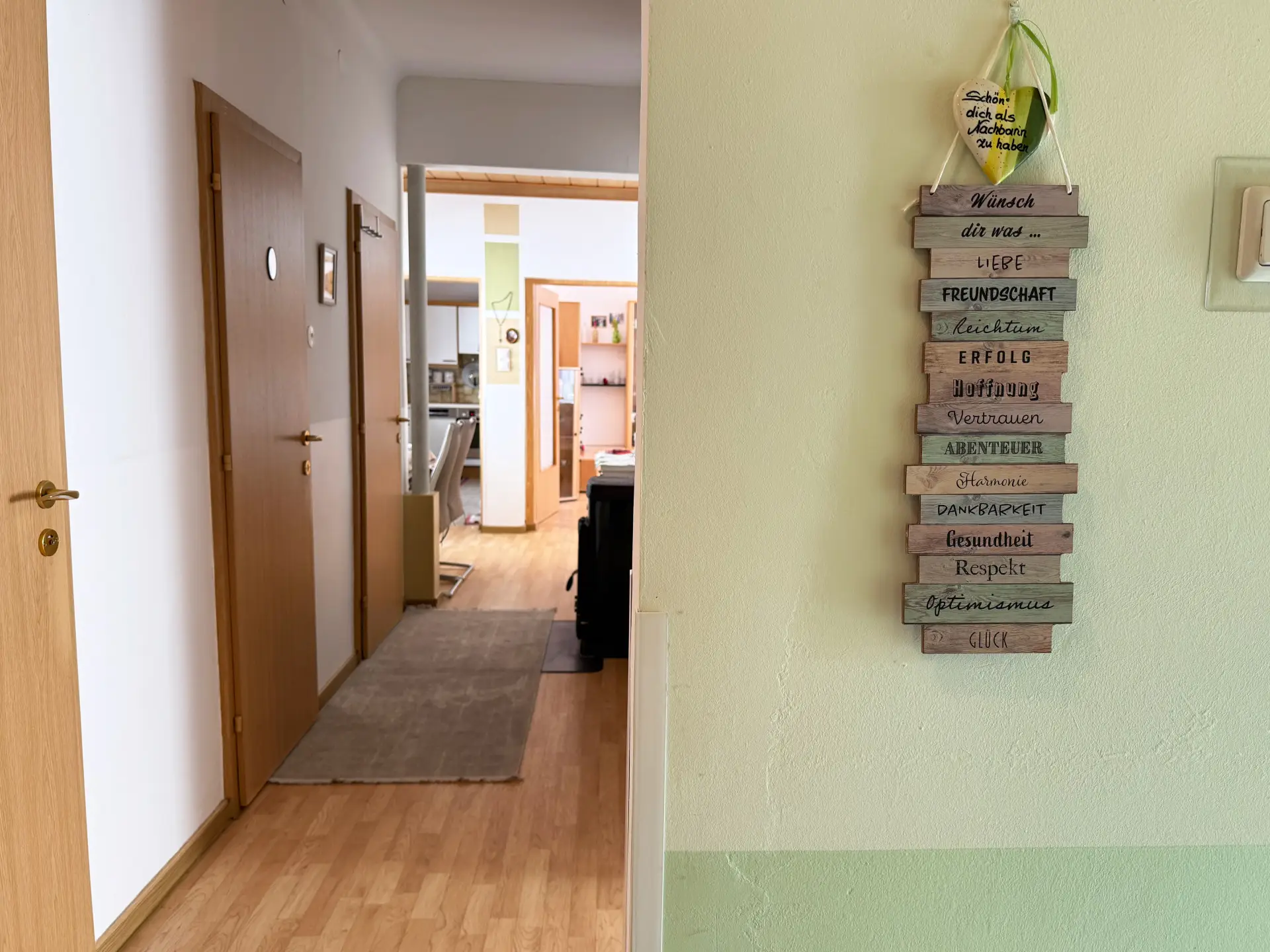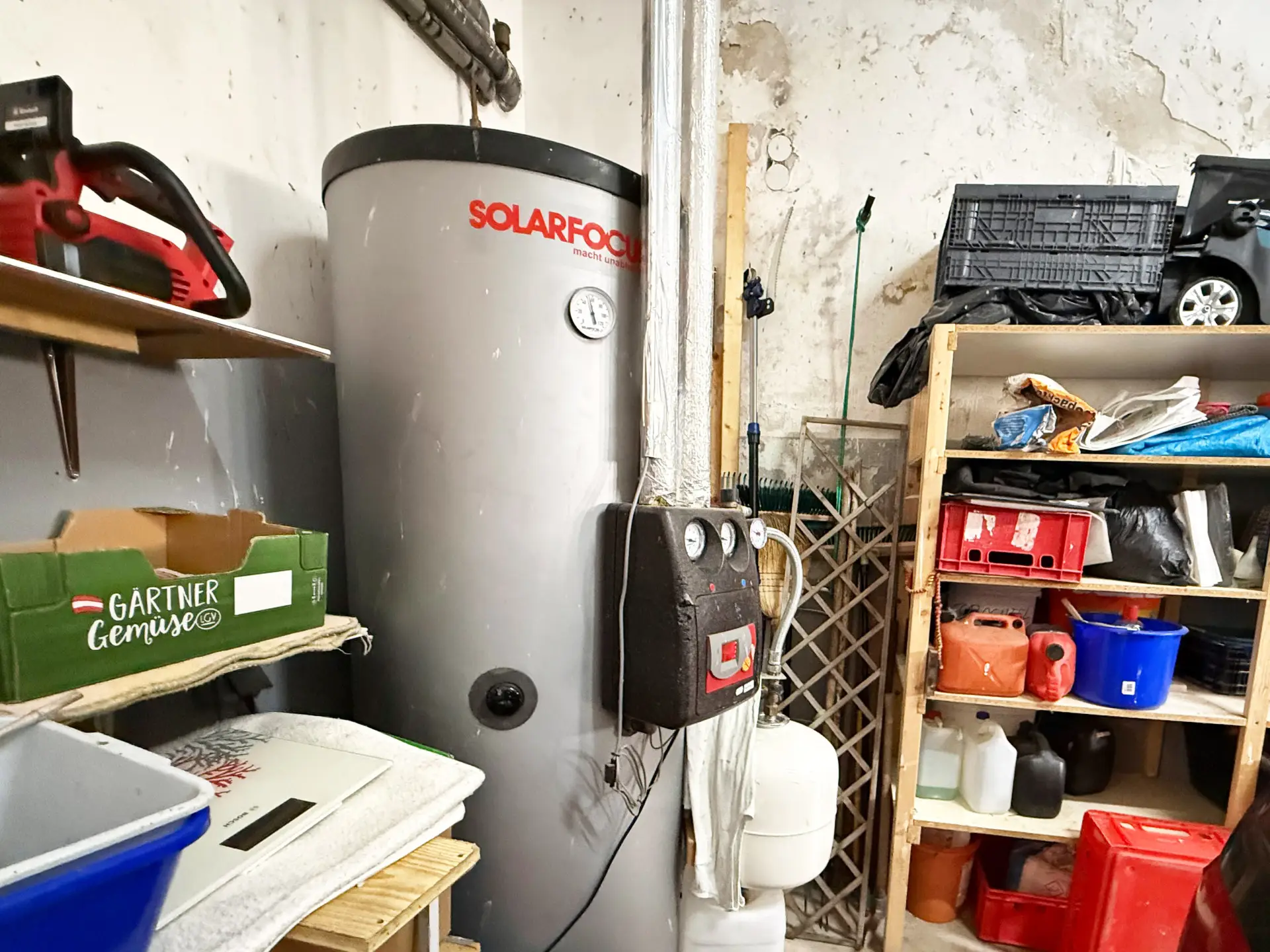 Geheizt wird einerseits via Ölheizung, aber auch ein zentral situierten Holzofen sorgt für behagliche Wärme im Wohnbereich.
