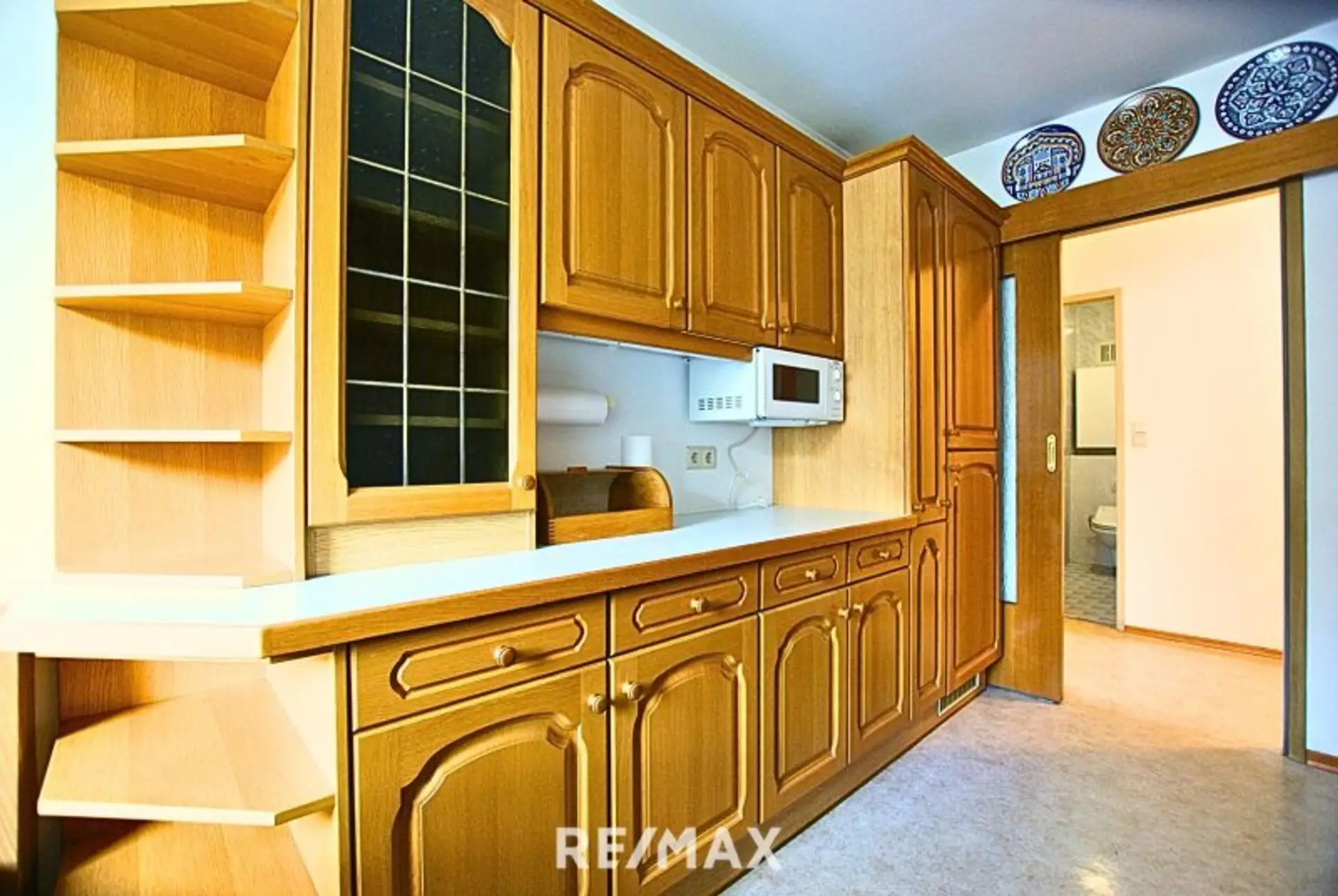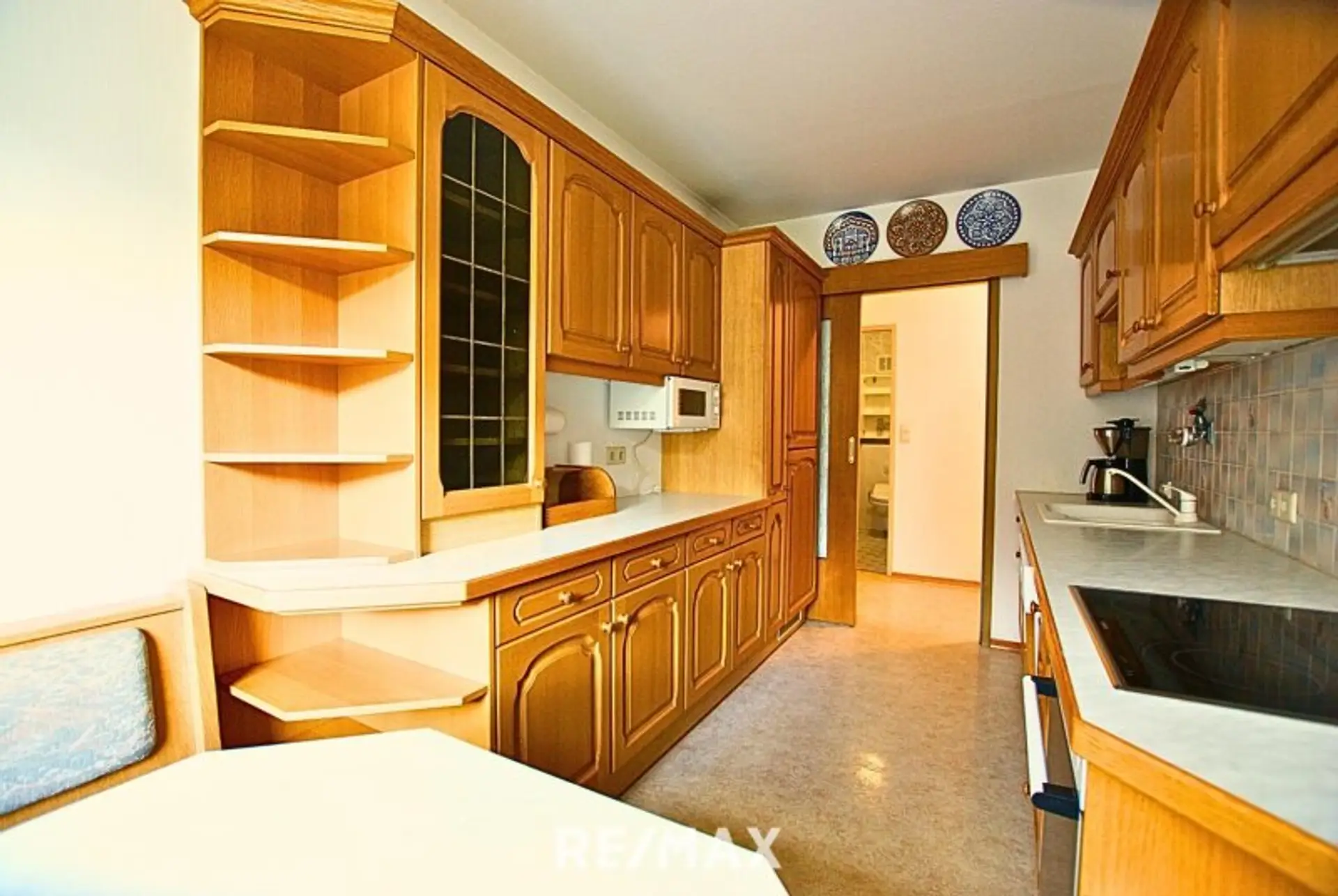 Entlang des Flurs gelangen Sie zur separaten Küche mit gemütlicher Sitzgelegenheit – ein Ort für gemeinsame Mahlzeiten und gesellige Momente. Das Badezimmer wurde 2012 modernisiert und mit neuer Dusche, Armaturen sowie zeitgemäßen Badmöbeln ausgestattet. Ein Abstellraum, ein separates WC sowie das Waschmaschinen/Trockner-Kombigerät im Bad, sorgen für zusätzlichen Komfort.