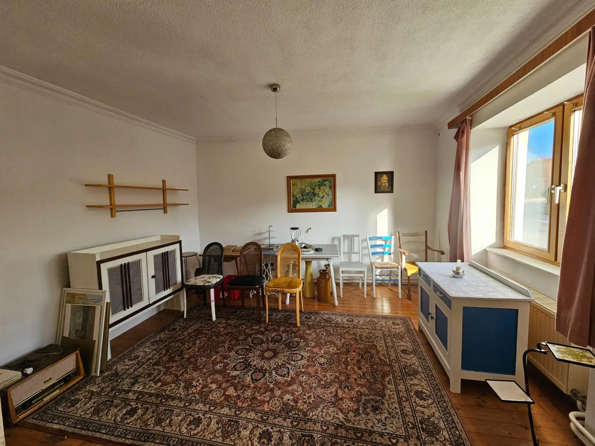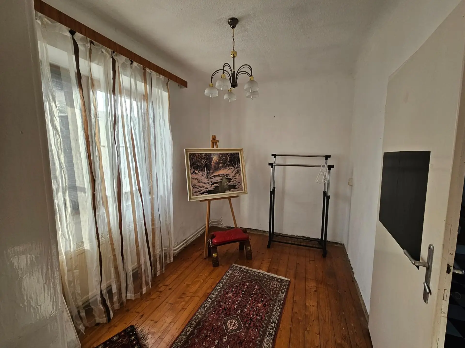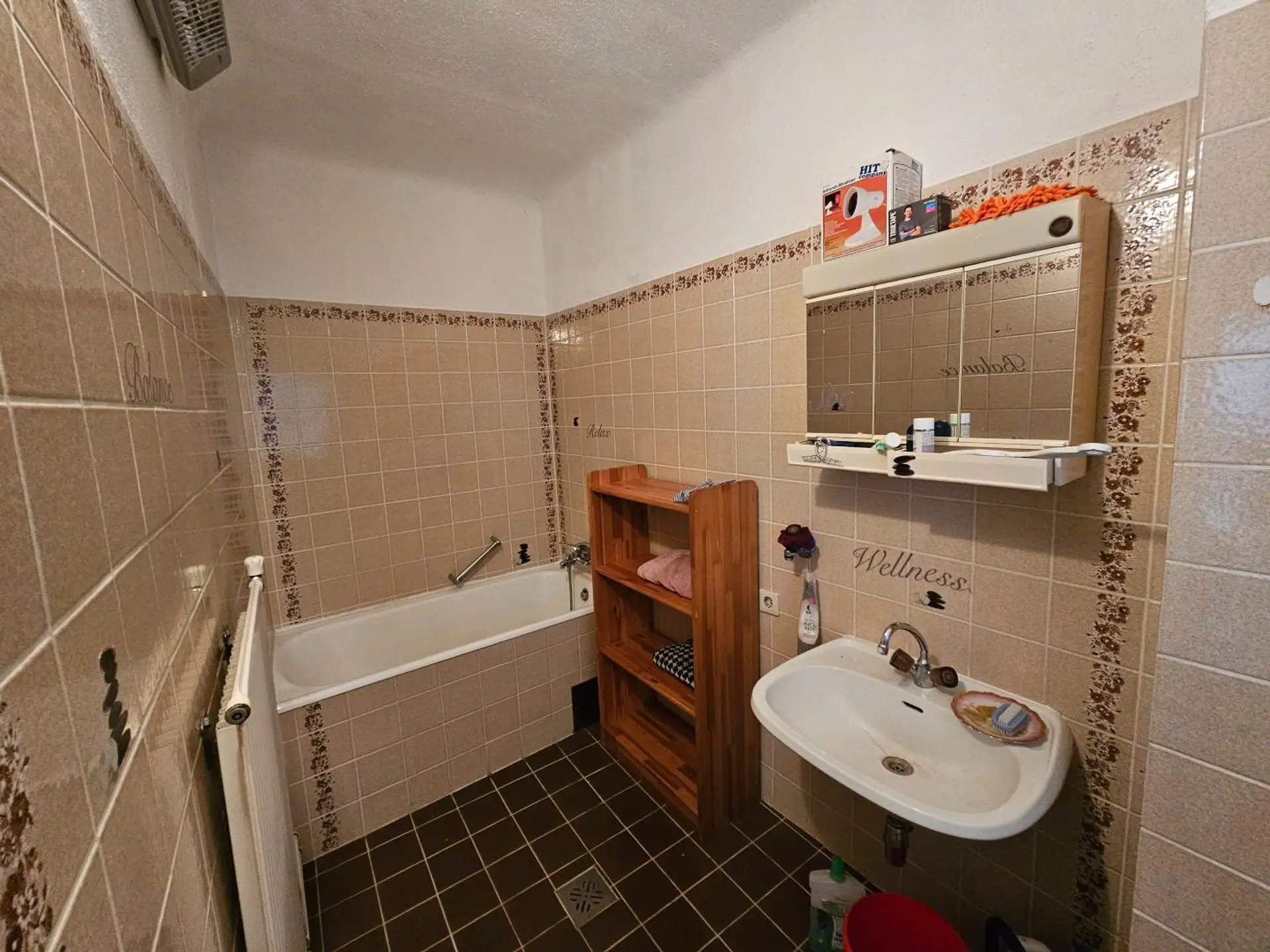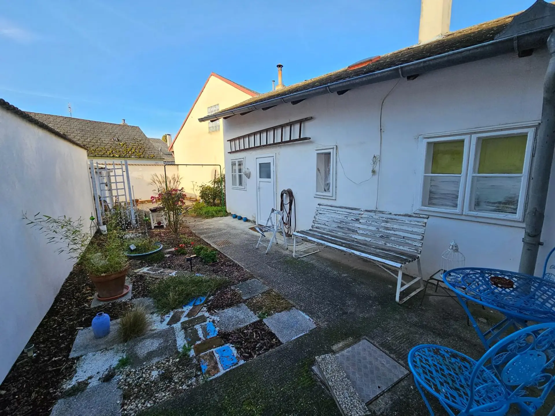 Es teilt sich auf in Vorraum, Küche, 3 Zimmer, Bad mit Wanne, WC und Wirtschaftsraum (siehe Plan bei Fotos). Im kleinen, geschmackvoll gestalteten Garten gibt es noch einen Abstellraum und eine Terrasse. Das Grundstück ist auch von hinten zugänglich.