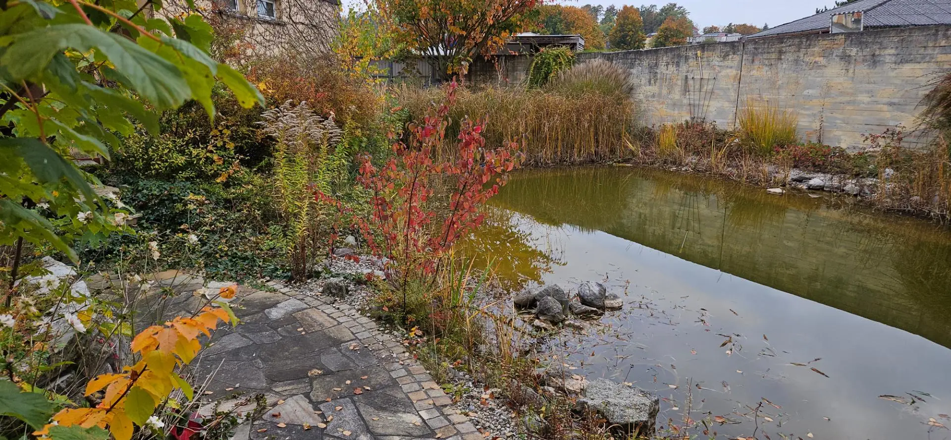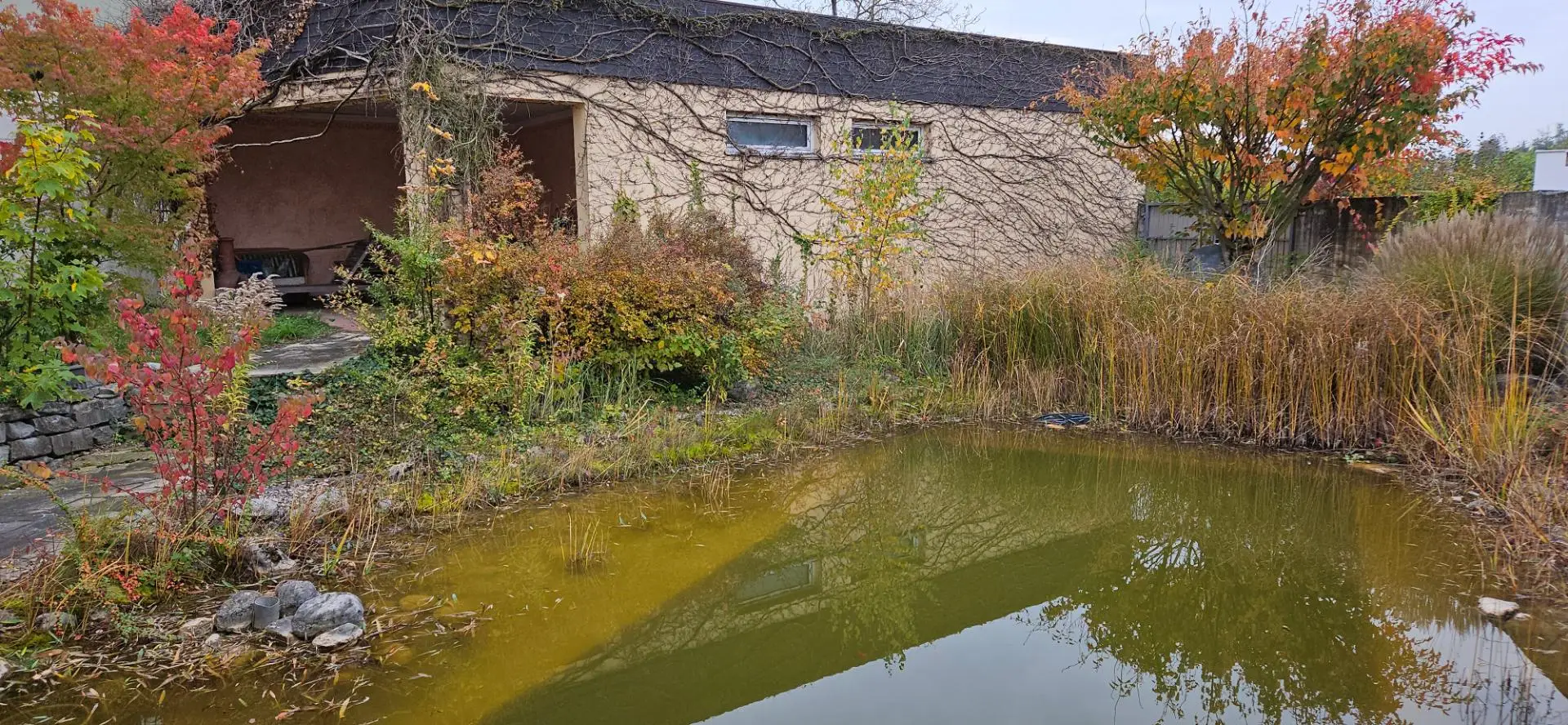 Eine Doppelgarage und ein Schwimmteich im Garten vervollständigen das tolle Angebot.