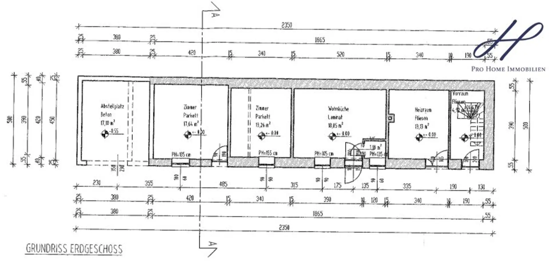 * _Erdgeschoss:_ Vorraum, ein Badezimmer mit Dusche und WC, ein Abstellraum, ein Zimmer, ein Wohnzimmer, Küche mit Essbereich sowie ein Zugang zum Teilkeller