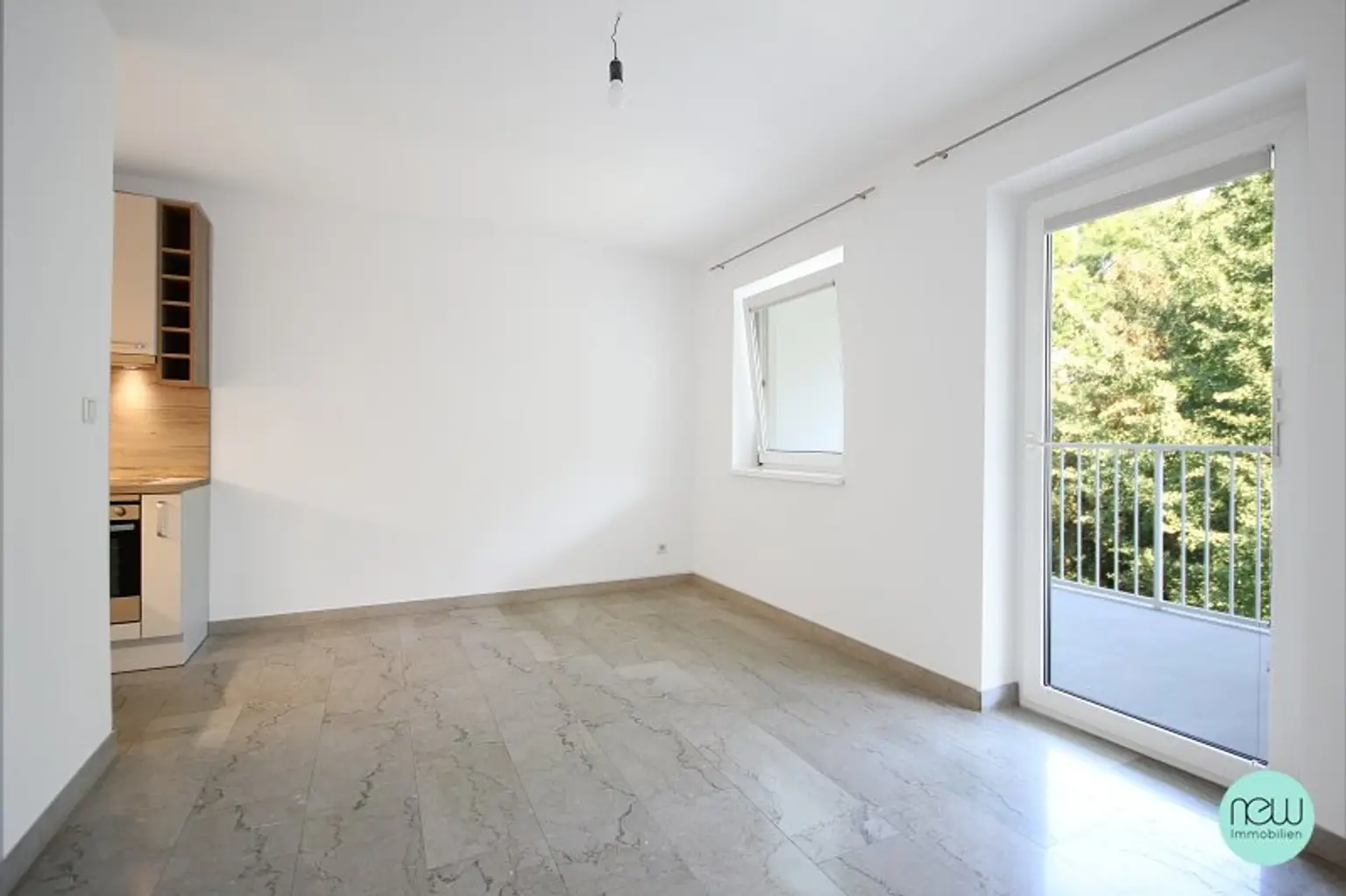 Mit schönem Grünblick von der 16m² Loggia und zwei gartenseitigen, ruhigen Zimmern befindet sich die schön renovierte Wohnung (45m²) im 2. Liftstock eines sehr gepflegten Hauses BJ 91 in der Nähe des Liesinger Platzes.