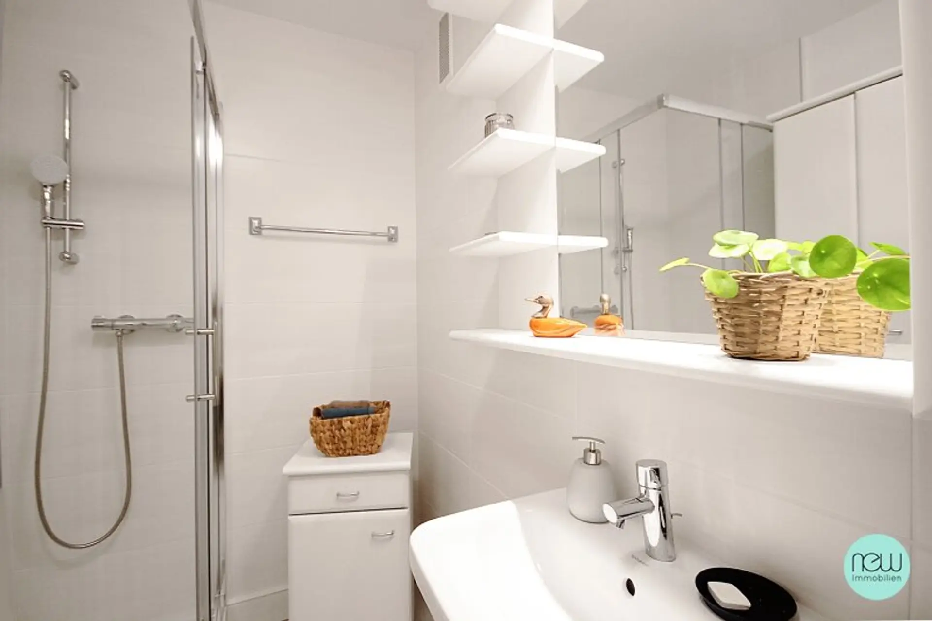 - Badezimmer mit Dusche und praktischem Wandverbau