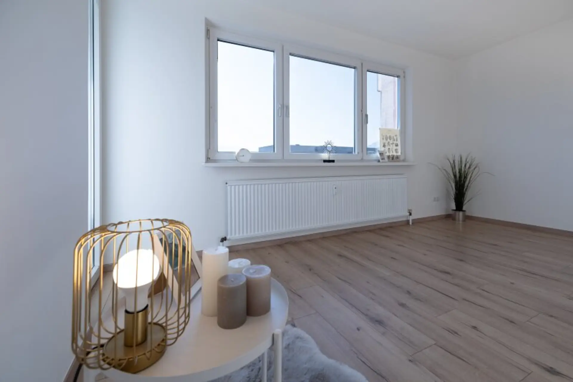 Großzügige Fensterflächen sorgen für Tageslicht in allen Zimmern. Der helle Laminatboden verleiht den Räumen ein modernes, gepflegtes Ambiente.