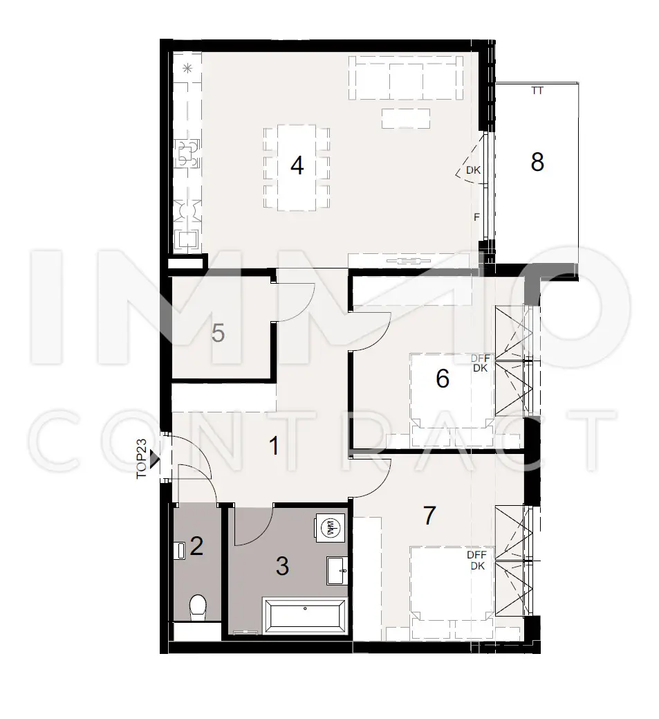 Hier, wo Licht und Ruhe aufeinandertreffen, entsteht ein Ort zum Ankommen und Wohlfühlen. Das großzügige Wohnzimmer mit offener Küche lädt zum gemeinsamen Kochen, Lachen und Leben ein – der perfekte Mittelpunkt für Familie und Freunde. Zwei gemütliche Schlafzimmer bieten Rückzugsorte zum Träumen, während das Bad – ganz nach Ihrem Wunsch mit Wanne oder Dusche – für entspannte Momente sorgt.