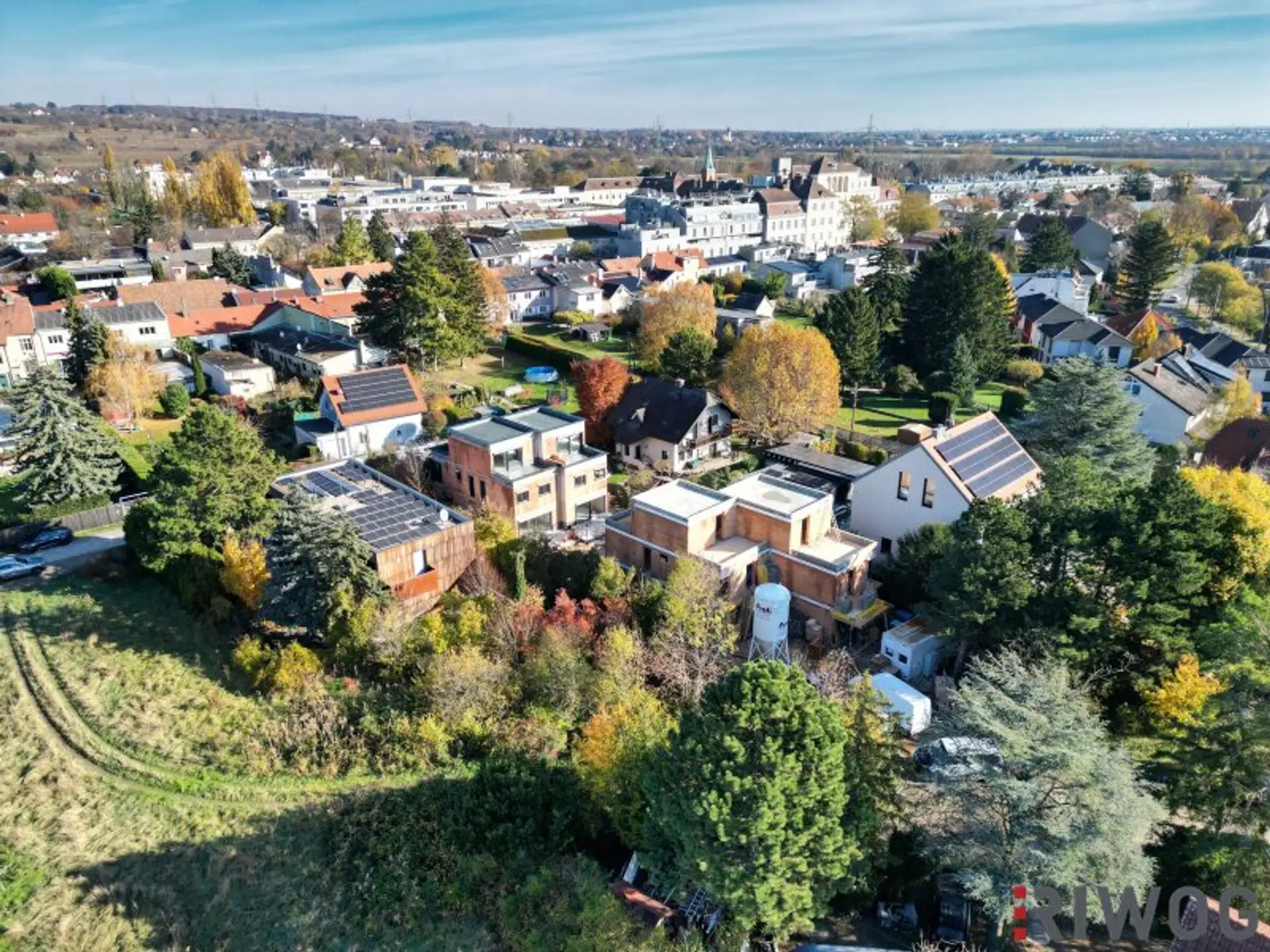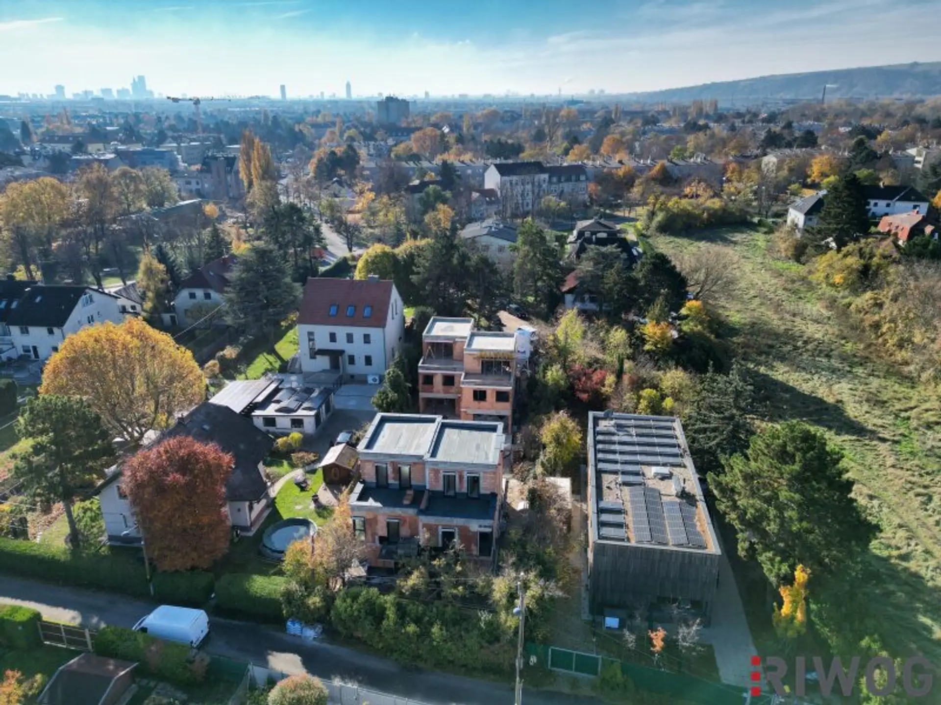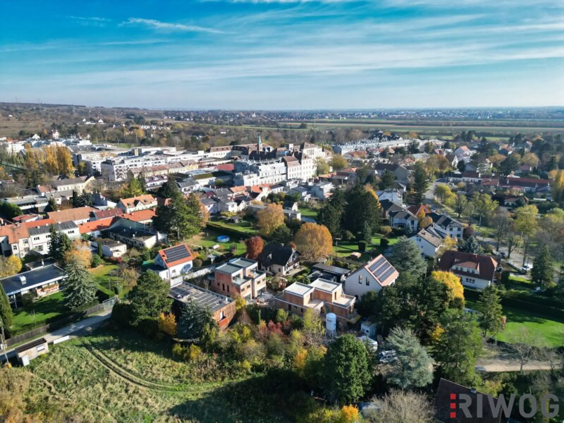 Zwischen Bäumen, Feldern und Einfamilienhäusern bietet die Lage eine enorme Ruhe - ja schon einen Erholungscharakter - und dennoch ist mit einem Spaziergang auch das Center 21 (Fachmarktzentrum) zu erreichen, wo man die Besorgungen des täglichen Bedarfs erledigen kann. In knapp einer Viertelstunde erreicht man mit dem Auto das Wiener Zentrum, daher: die ideale Lage, wenn man es ruhig & grün mag, aber trotzdem schnell in der Stadt sein will.
