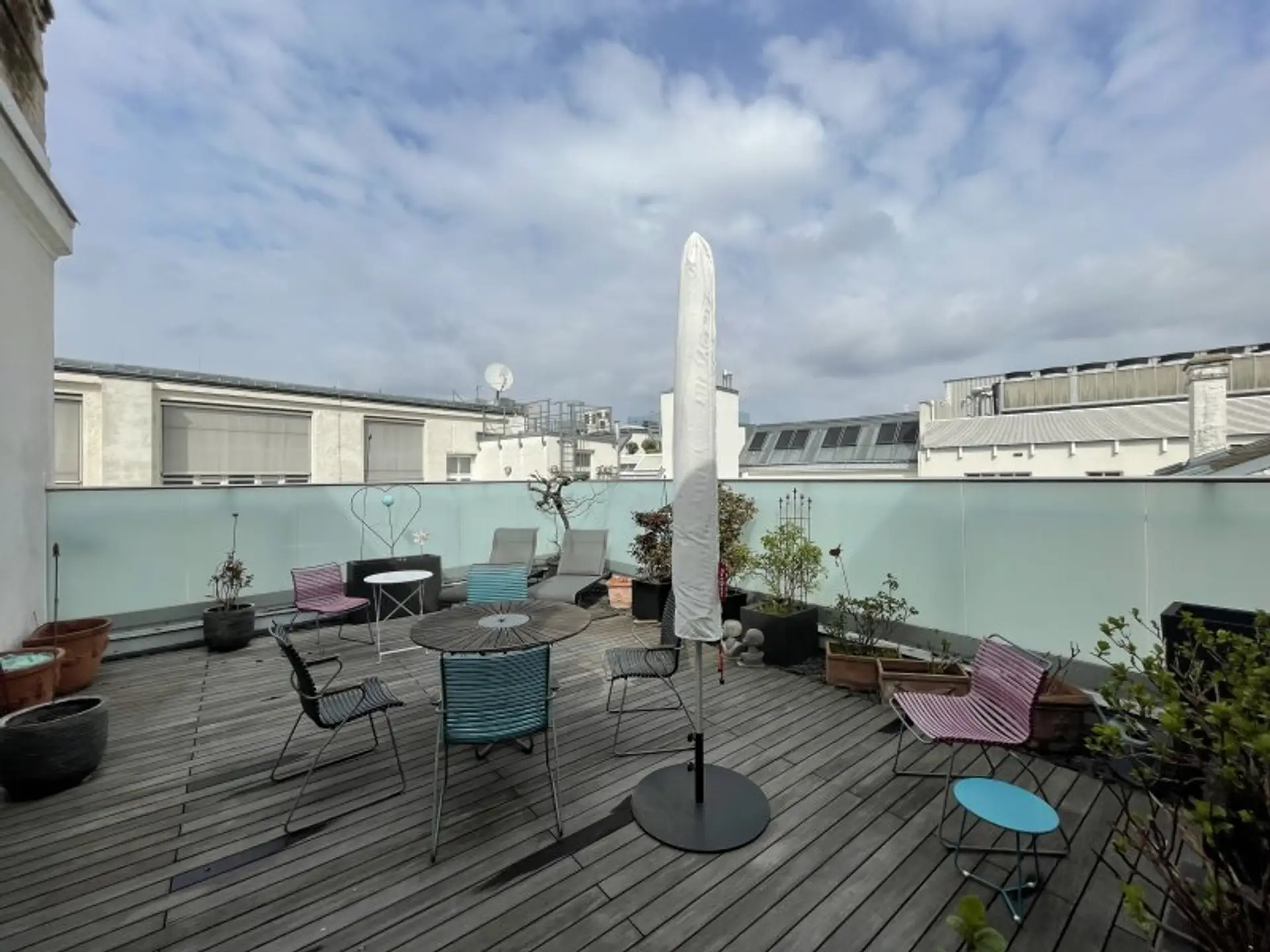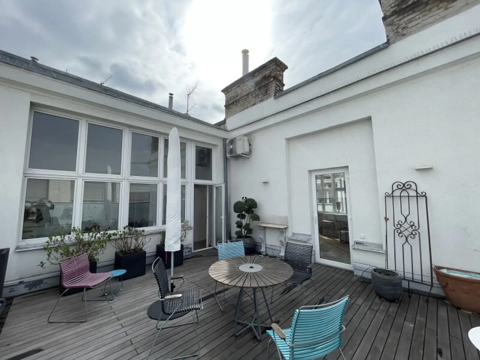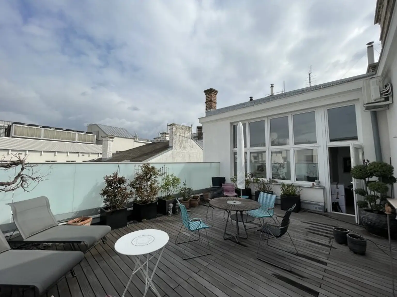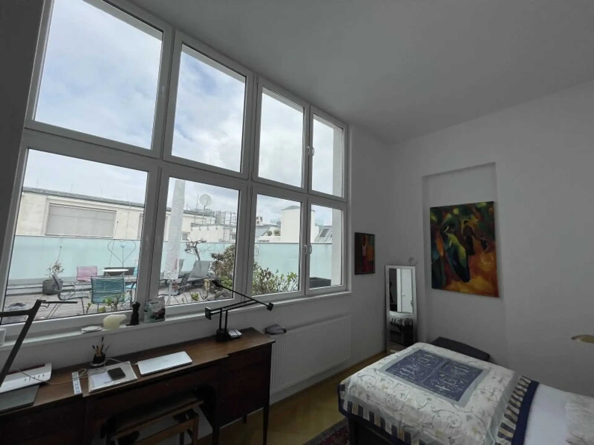 Neben dem riesigen Panoramafenster des Wohnsalons liegt der uneingesehene Dachgarten mit 43,56 m² -> ALLES AUF EINER EBENE !