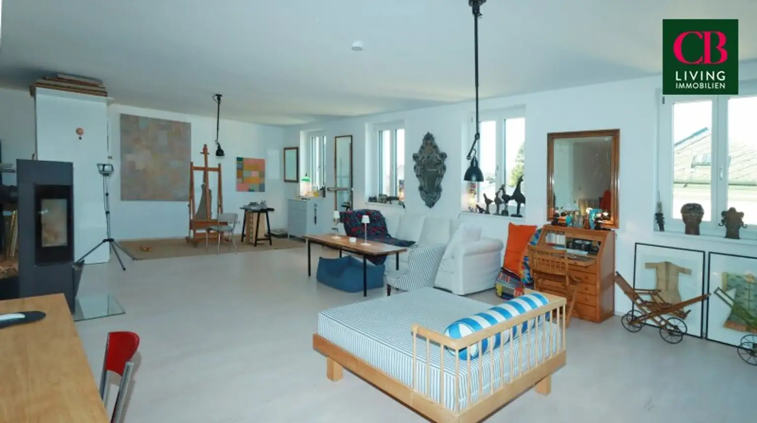 Sonnendurchflutete Räume , ein kleiner Balkon und ein gemütlcher Schwedenofen runden den Charme dieser Immobilie ab.