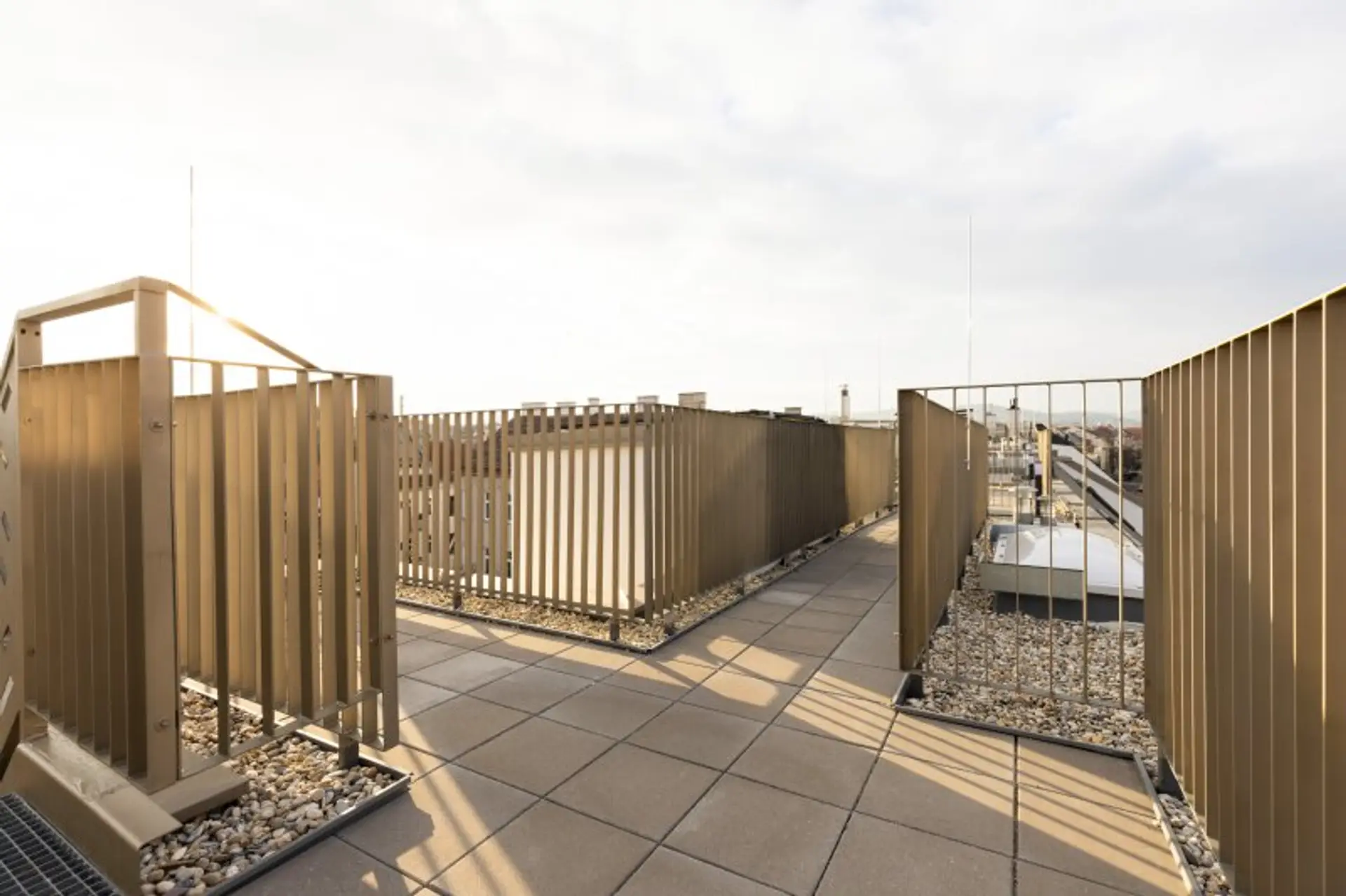 - Freiflächen: vorgelagerte Terrassen und Dachterrasse