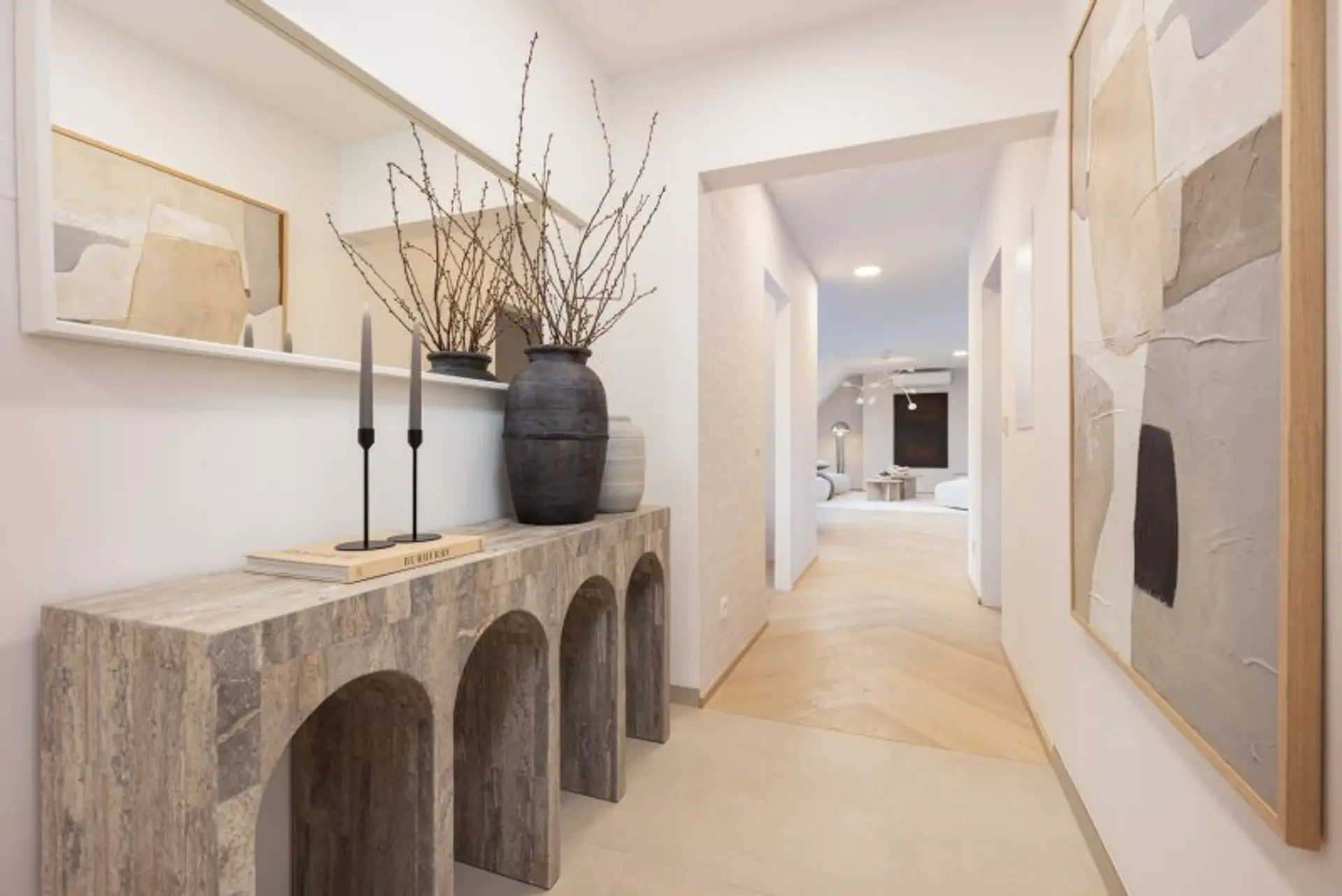 Der zentrale Vorraum, welcher natürlich auch vom Stiegenhaus zu betreten ist, lässt sich perfekt mittels Einbauten zum Stauraum-Wunder gestalten und stellt das Verbindungsstück zwischen dem privaten Schlaf- und Wellness-Bereich sowie dem öffentlichen Wohn-Bereich dar.
