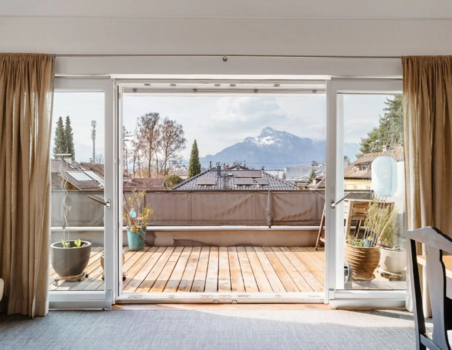 Ein Logenplatz über den Dächern von Aigen mit Blick auf den Untersberg Diese moderne Dachgeschosswohnung in Salzburger Bestlage Aigen vereint Großzügigkeit mit einer Atmosphäre, die gleichermaßen stilvoll wie entspannt…