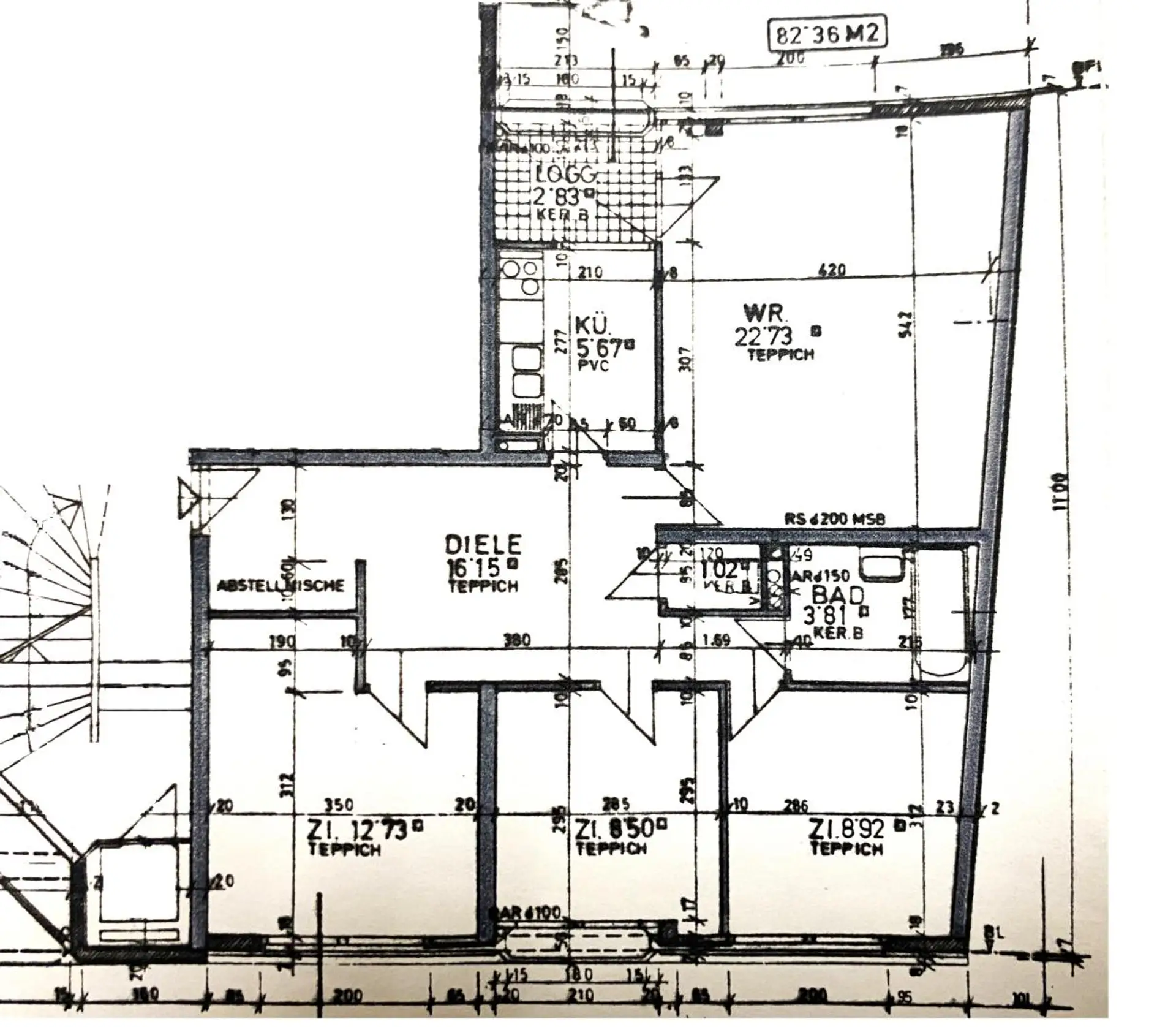 Aktuell verfügt die Wohnung über drei Zimmer, lt. Bauplan ist es eine Vier-Zimmer-Wohnung; ein Umbau ist daher recht einfach möglich.