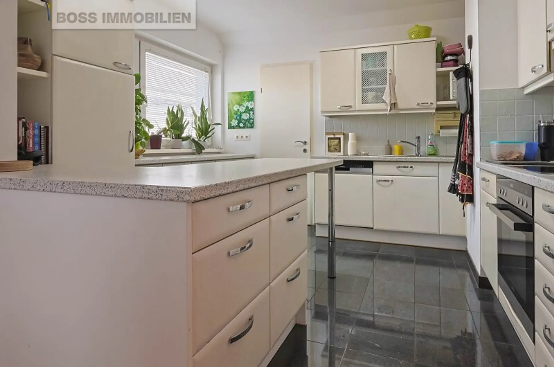 Die großzügige, maßgefertigte Küche lädt sowohl zu einem schnellen Frühstück als auch zu ausgedehnten Mahlzeiten am angrenzenden Essplatz ein. Sie ist vollständig ausgestattet und kann gegen Ablöse übernommen werden, sodass Sie sofort nach Einzug mit Kochen und Backen starten können.