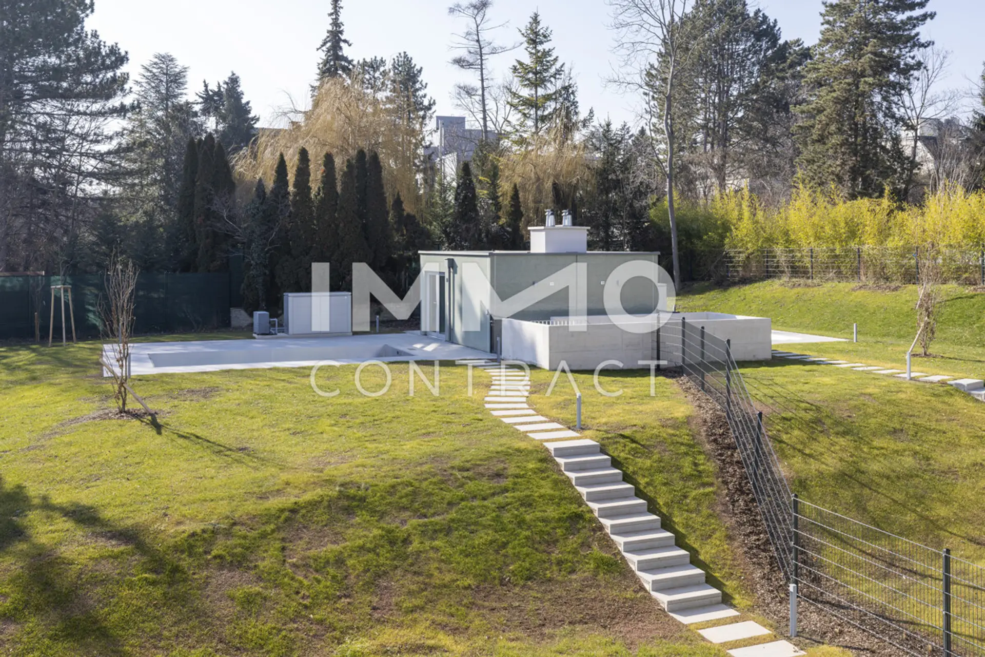 Ein absolutes Highlight dieser Wohnung ist der direkte Zugang zum eigenen Garten, der Ihnen nicht nur ein Refugium im Freien bietet, sondern auch die Möglichkeit, sich im privaten Poolbereich mit eigenem Badehaus zu entspannen. Die großzügige Grünfläche mit über 640 m² lässt sich in verschiedene Terrassenflächen gliedern, sodass man den ganzen Tag über immer wieder neue Rückzugsorte nutzen kann.
