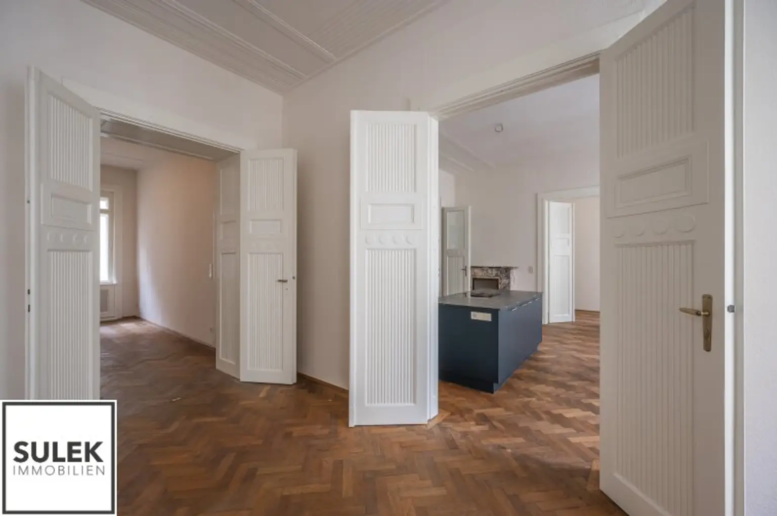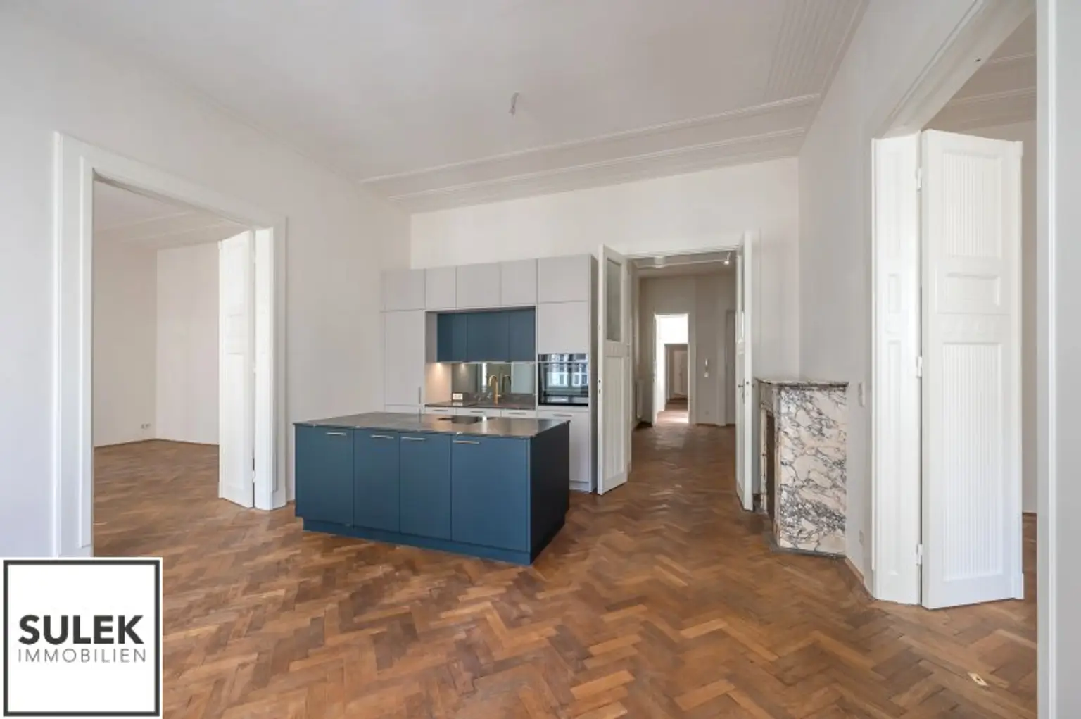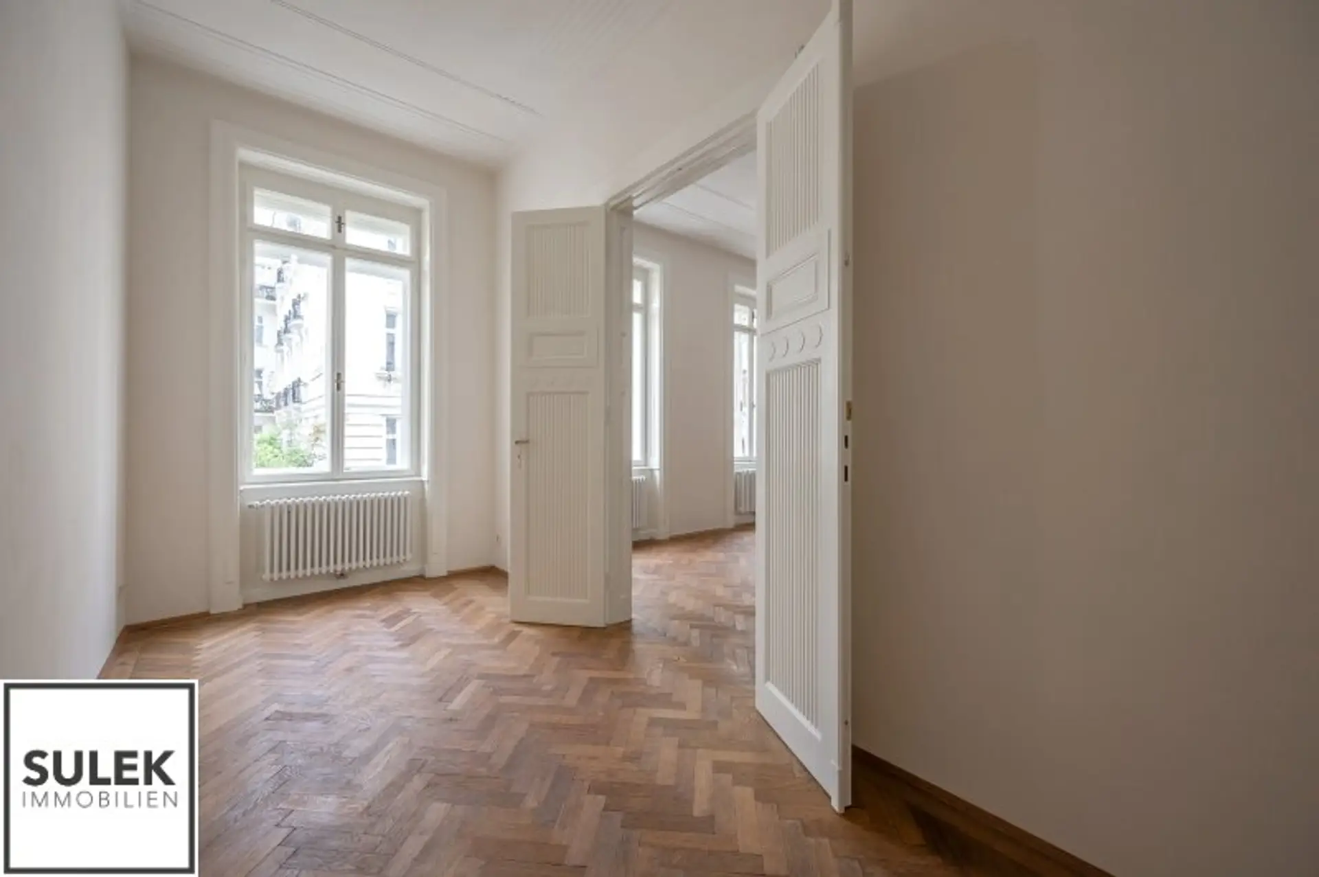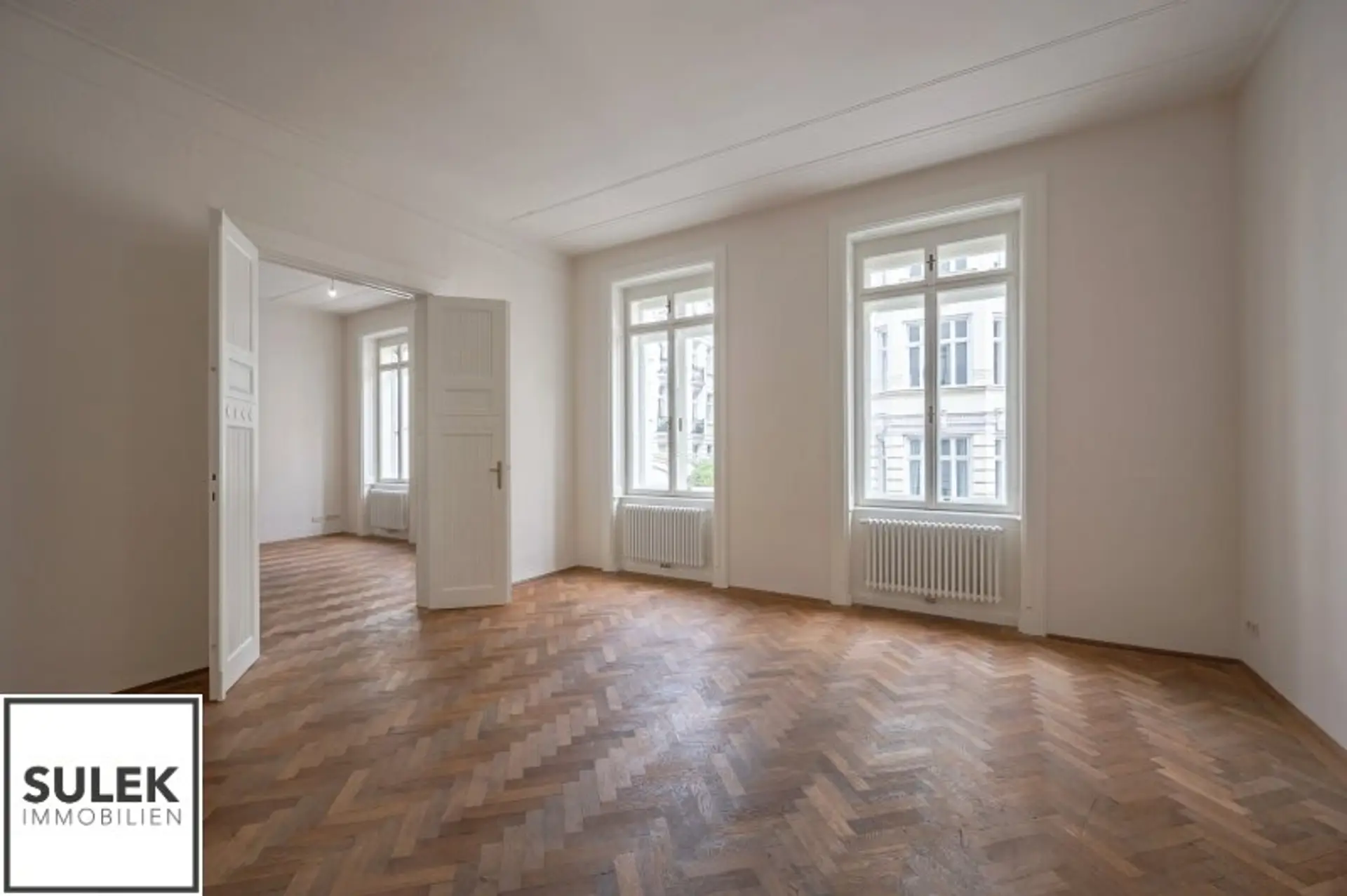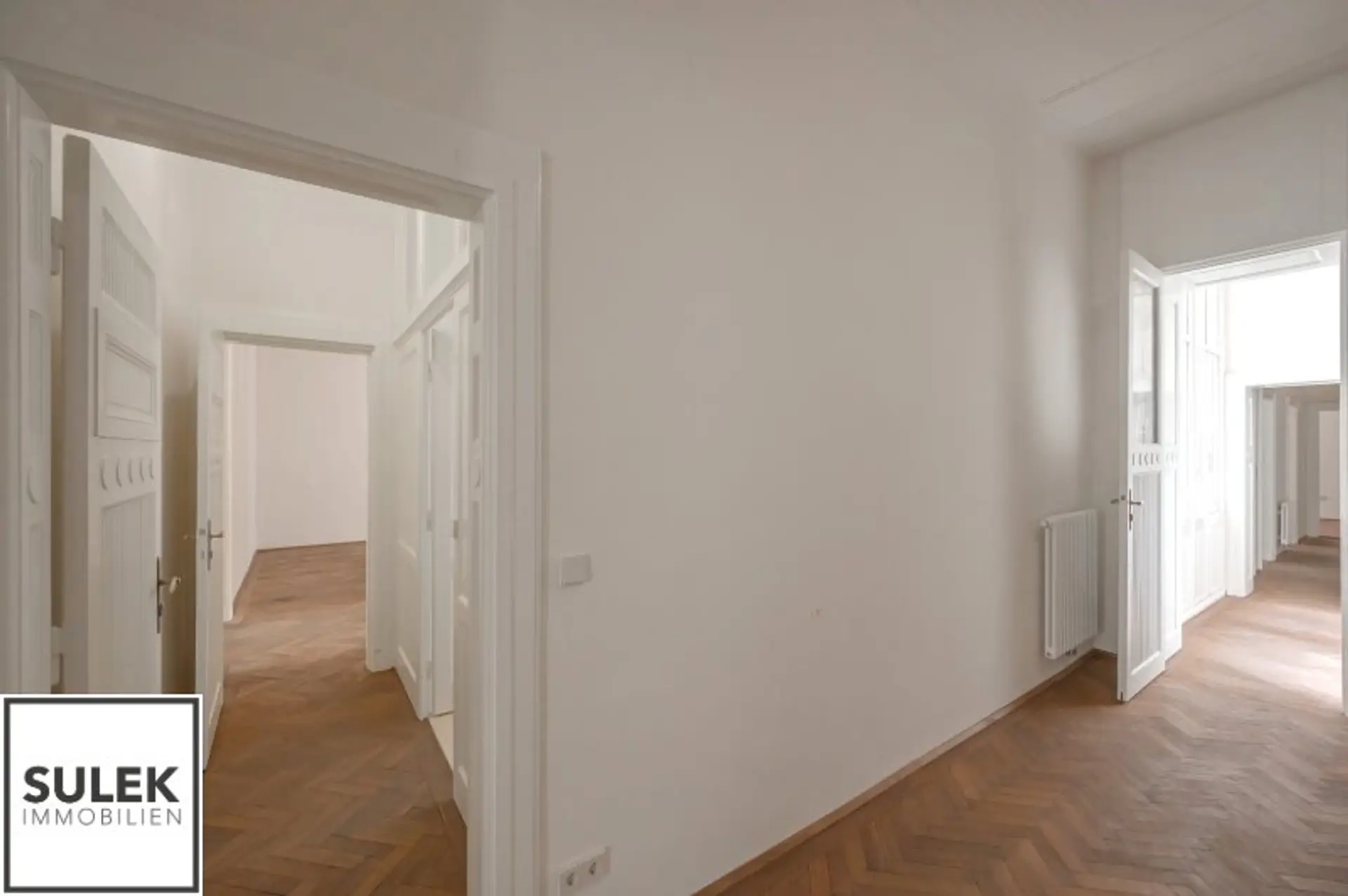Im 2. Stock dieses kunsthistorischen Wohnhauses erwartet Sie eine im Jahr 2024 sanierte 5 Zimmer Wohnung mit einer Wohnfläche von rund 177 m² Wohnfläche mit extravaganter Ausstattung. Vom großzügigen Eingangsbereich, der reichlich Platz für Garderobe bietet, gelangt man stirnseitig in die lichtdurchflutete Wohn- und Essbereiche. Die moderne Einbauküche mit einer praktischen Kochinsel ist vollausgestattet. Die Wohnküche ist von beiden Seiten über Flügeltüren zu zwei Räumlichkeiten verbunden. Zwei weitere separat begehbare Zimmer und ein Kabinett bieten Flexibilität in der Nutzung als Schlaf-, Kinder- oder Arbeitszimmer. Ein besonderes Highlight sind beide vornehmen Badezimmer mit Fenster, Dusche, welche durch ein dunkles Handwaschbecken mit goldfarbene Armaturen wunderbar ergänzt wird. Zusätzlich bietet das größere Badezimmer eine ovale freistehende Badewanne und ein WC. Die separate Toilette besticht durch ihre glatten Fliesen im Jugendstilornamenten und Marmorplatten. Selten werden Sie in Wien solch ein historisches Wohngefühl mit unverwechselbarem Altbau - Flair finden!