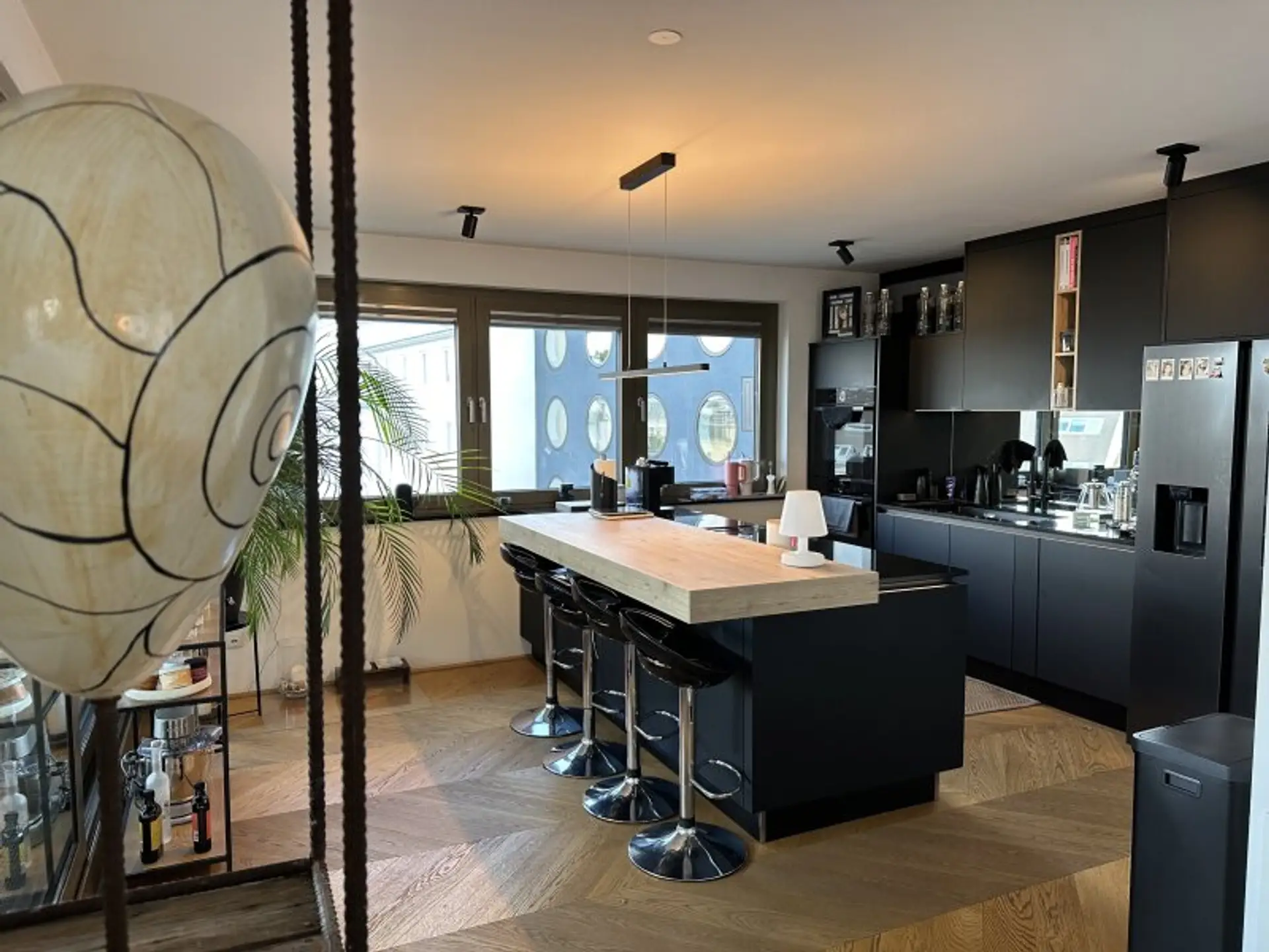 Für eine angenehme Atmosphäre sorgen die Räume ohne Dachschrägen. Die Wohnung punktet mit klaren Linien und verbindet „Altbauflair“ mit urbanem Wohnstil und einem traumhaften Ausblick.