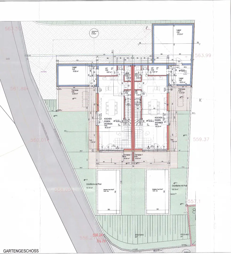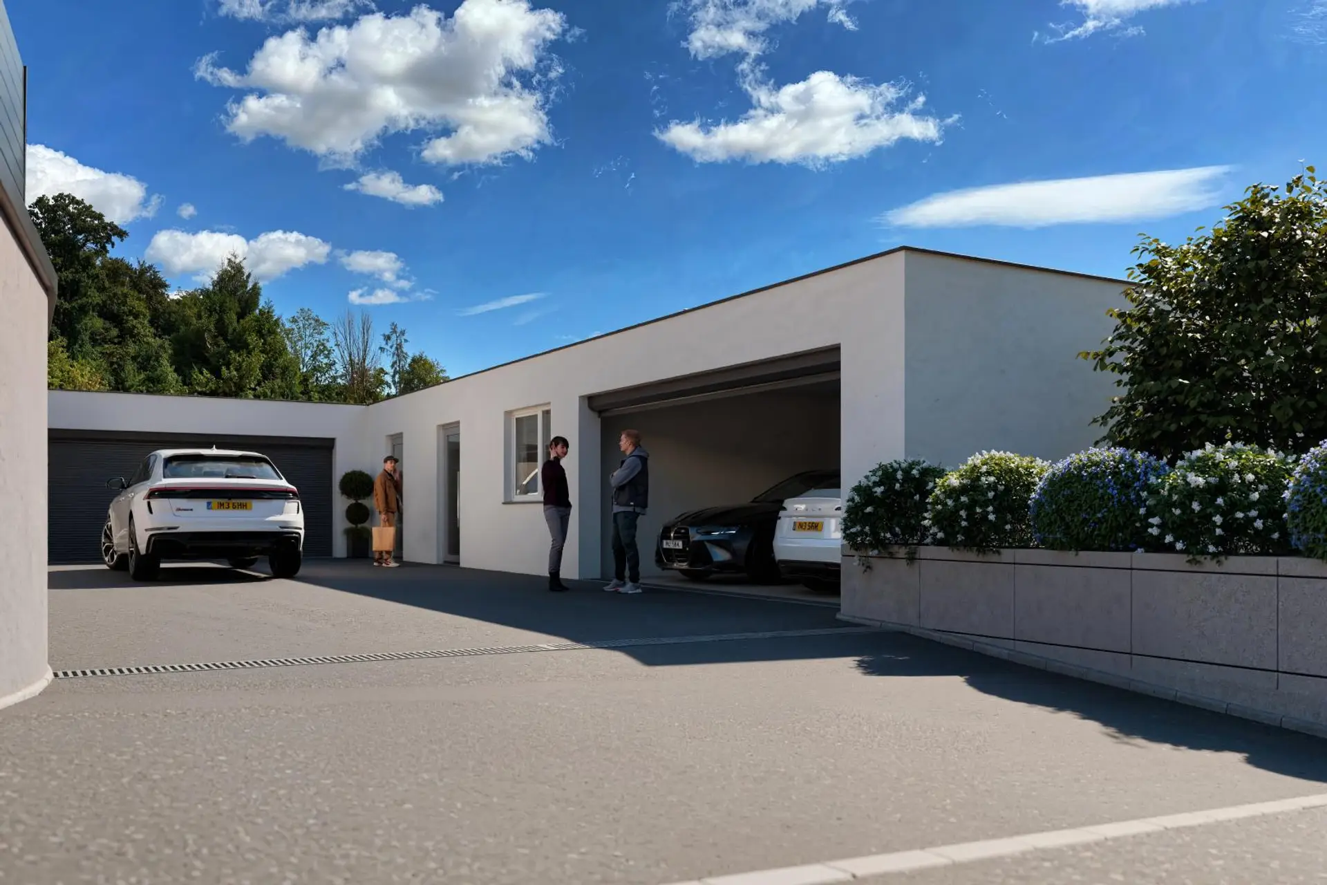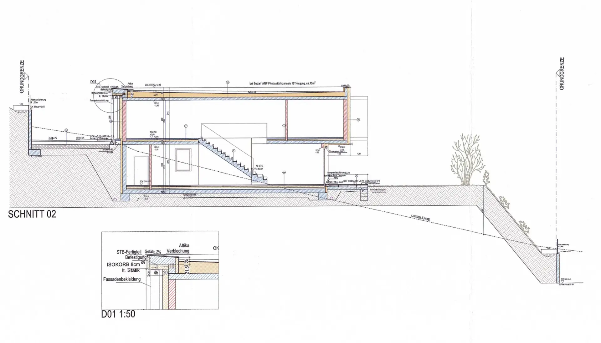 Durch die Hanglage entsteht ein einzigartiger zweigeschossiger Aufbau aus Erdgeschoss und Gartengeschoss – beide Ebenen mit direktem Bezug ins Freie.