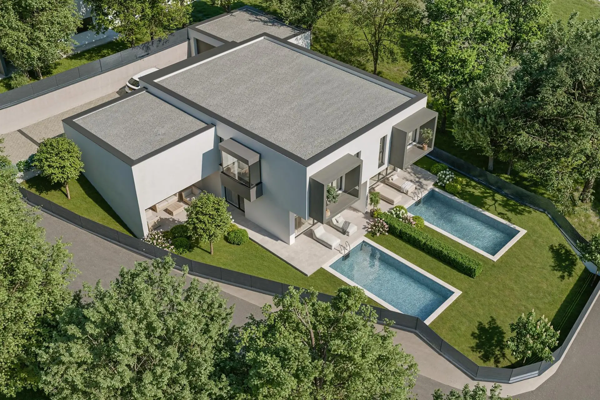 - Großzügige Terrassenflächen, viel Grünfläche & exklusiver Poolbereich