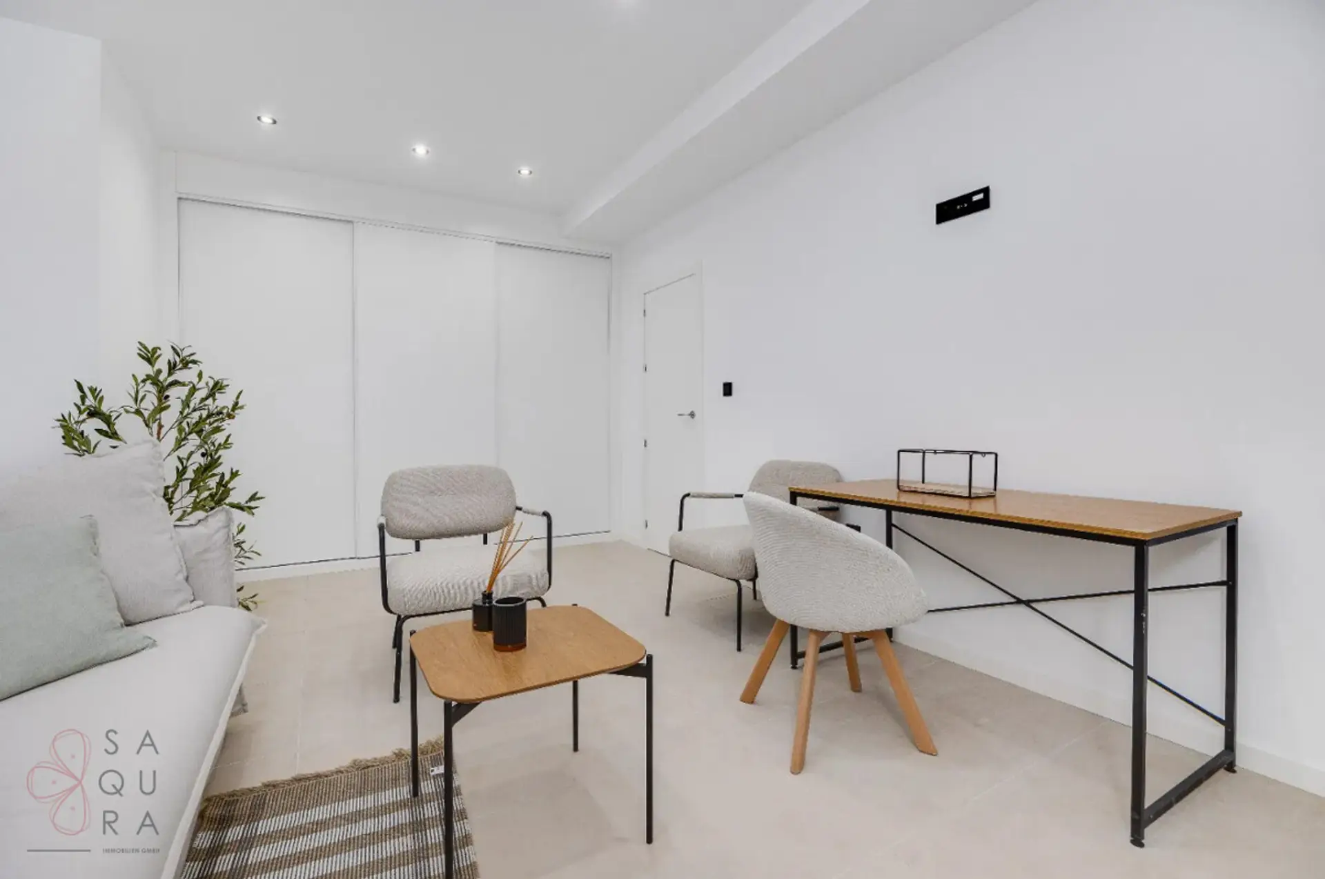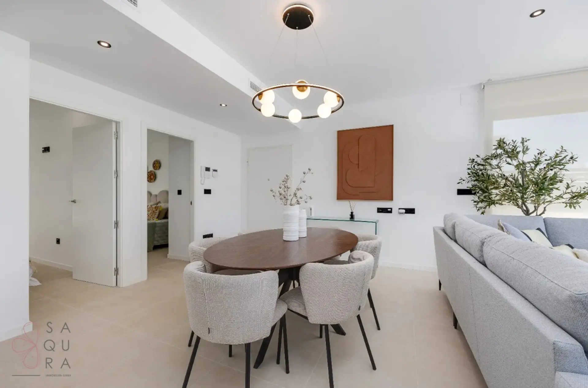 Upon entering, you are welcomed by a generous sense of space, warmth and refinement. At the heart of the home lies an impressive 51 m² open-plan living and dining area, where natural light flows through large sliding glass doors, creating a seamless connection between indoor and outdoor living. The terrace with private swimming pool provides the perfect setting for long summer days in the Spanish sun.