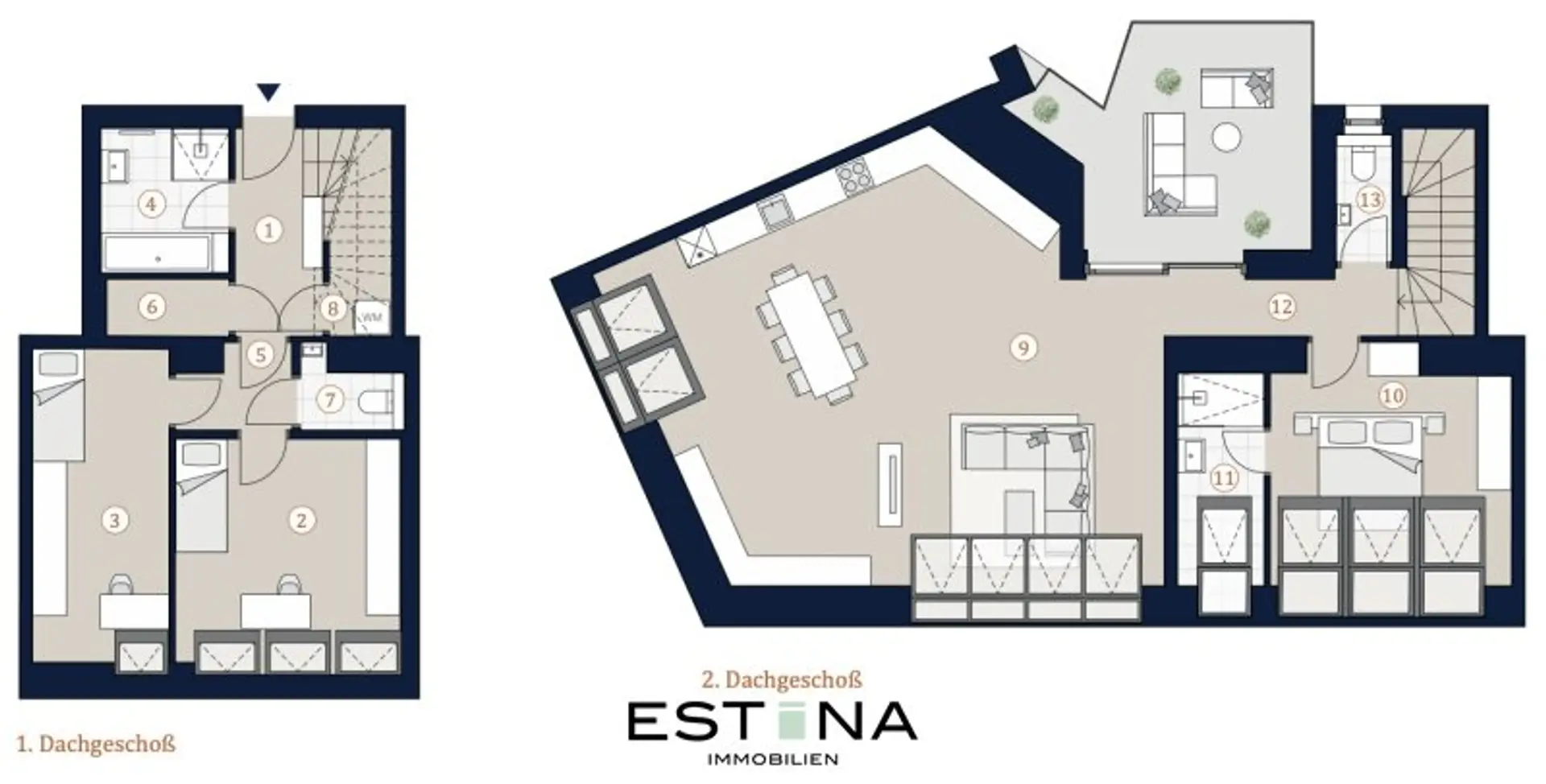 In den Rooftop Suites verschmelzen historische Substanz und moderner Luxus zu einem außergewöhnlichen Wohnkonzept mit beeindruckender Aussicht.