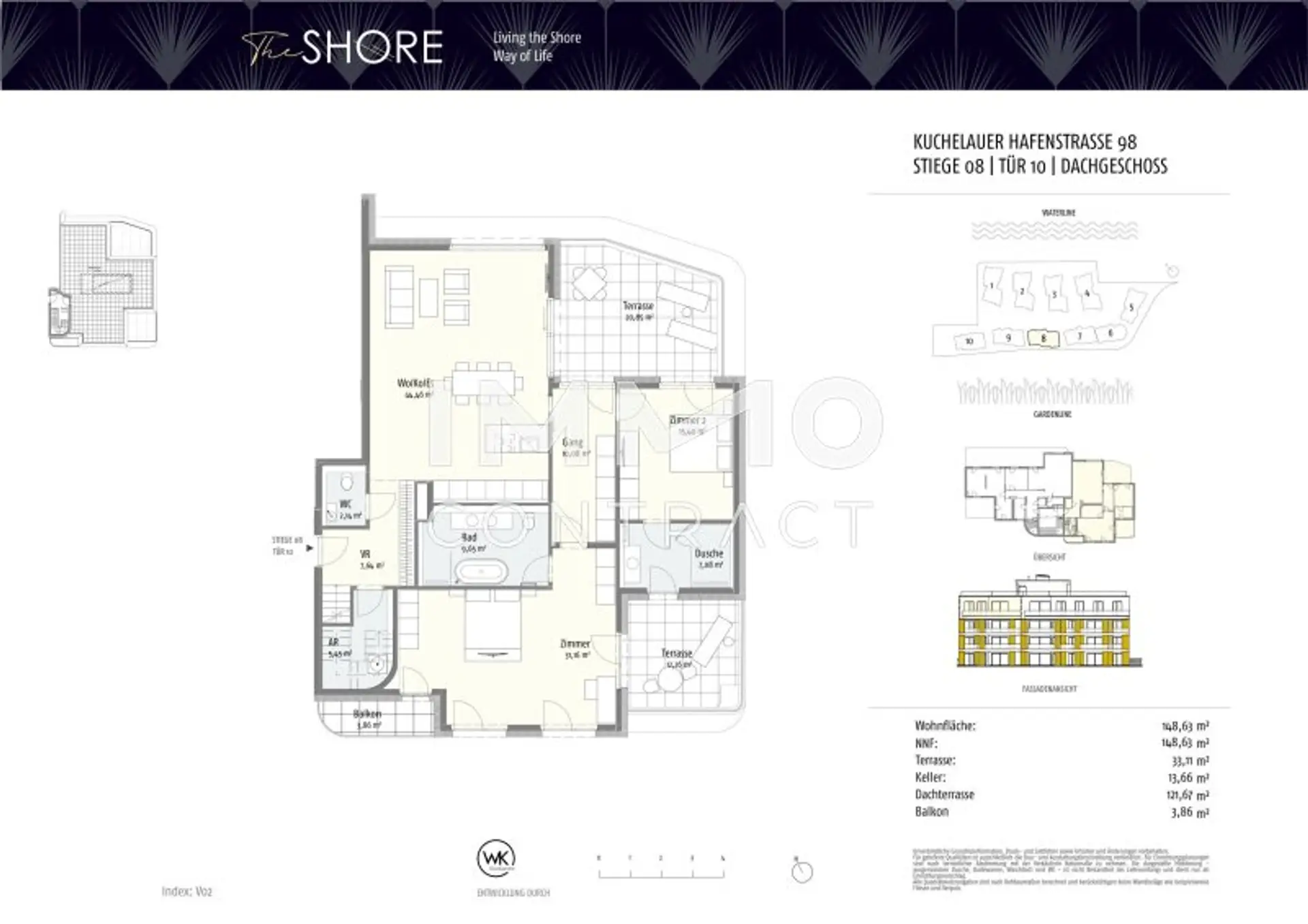 Dieses einzigartige Projekt im 19. Bezirk bietet Ihnen nicht nur ein außergewöhnliches Wohnumfeld, sondern auch eine hervorragende Anbindung an das Wiener Stadtzentrum. Hier genießen Sie die Ruhe am Wasser und sind dennoch nur 15 Minuten von der Wiener Innenstadt entfernt. Viele der beliebten traditionellen Wiener Heurigen sind von dieser Adresse für exklusives Wohnen fußläufig erreichbar und der nahegelegene Leopoldsberg und Kahlenberg bieten nicht nur einen herrlichen Anblick, sondern laden auch zu Freizeitaktivitäten ein.