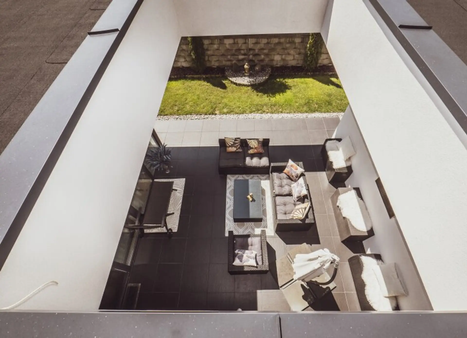 Die Terrasse ist teilweise als lichtdurchfluteter Innenhof ausgestaltet, was die Gemütlichkeit noch erhöht.