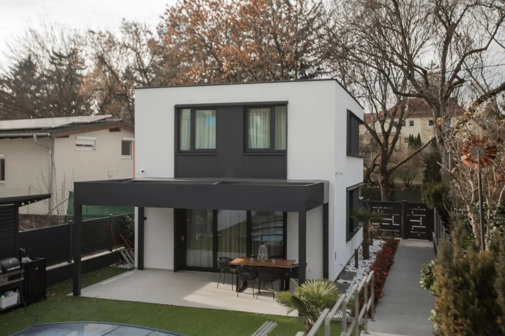 Entdecken Sie dieses luxuriöse, moderne 3-stöckige Haus, das 2021 erbaut wurde und sich in einem idyllischen Kleingarten im 14. Bezirk von Wien befindet. Mit einer einzigartigen Liebe zum architektonischen Detail bietet dieses Zuhause eine harmonische Verbindung von Stil und Funktionalität.