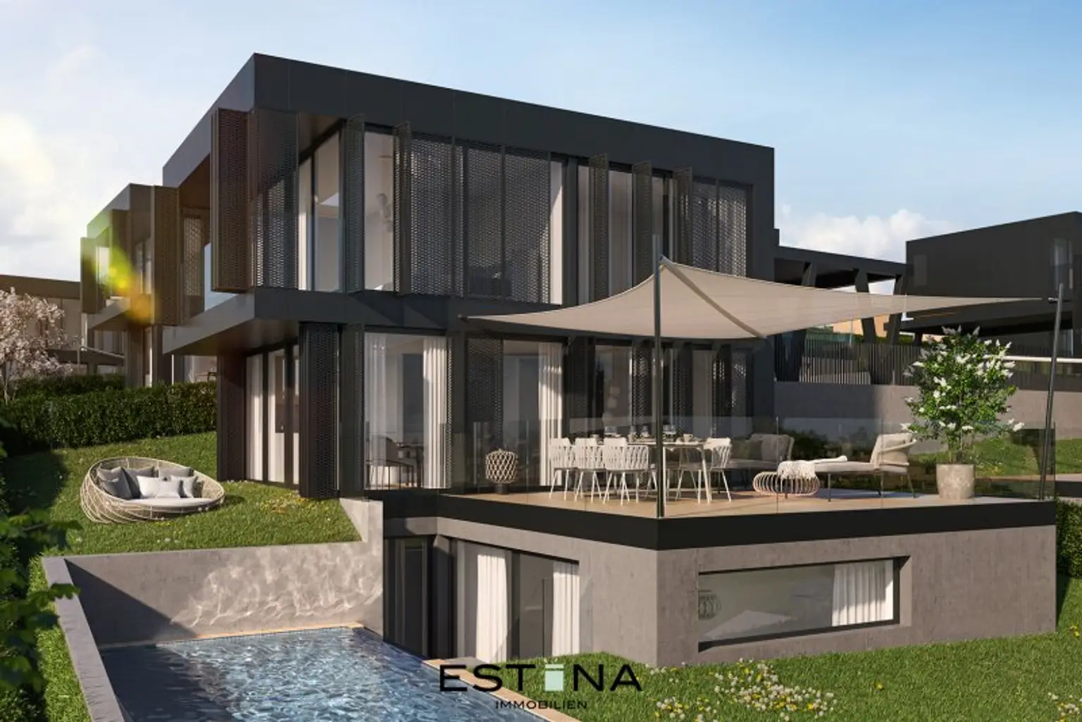 In den UNIQUE Villen verschmelzen anspruchsvolle Architektur, edle Materialien und modernste Technik zu einem Wohnkonzept der Extraklasse. Hochwertige Eichendielen verleihen den Innenräumen eine warme, natürliche Eleganz, während großzügige Fensterflächen lichtdurchflutete Wohnräume schaffen und den Blick in die umliegende Natur öffnen. Die stilvoll gestalteten Bäder begeistern mit exklusivem Feinsteinzeug und erstklassigen Markensanitärprodukten und verwandeln den Alltag in ein Spa-ähnliches Erlebnis. Intelligente Komfortlösungen wie ein integriertes Audiosystem im Bad sowie eine innovative Smart-Home-Steuerung für Licht und Raumklima runden das Wohnerlebnis ab – für höchsten Wohnkomfort auf Knopfdruck, jederzeit und überall.
