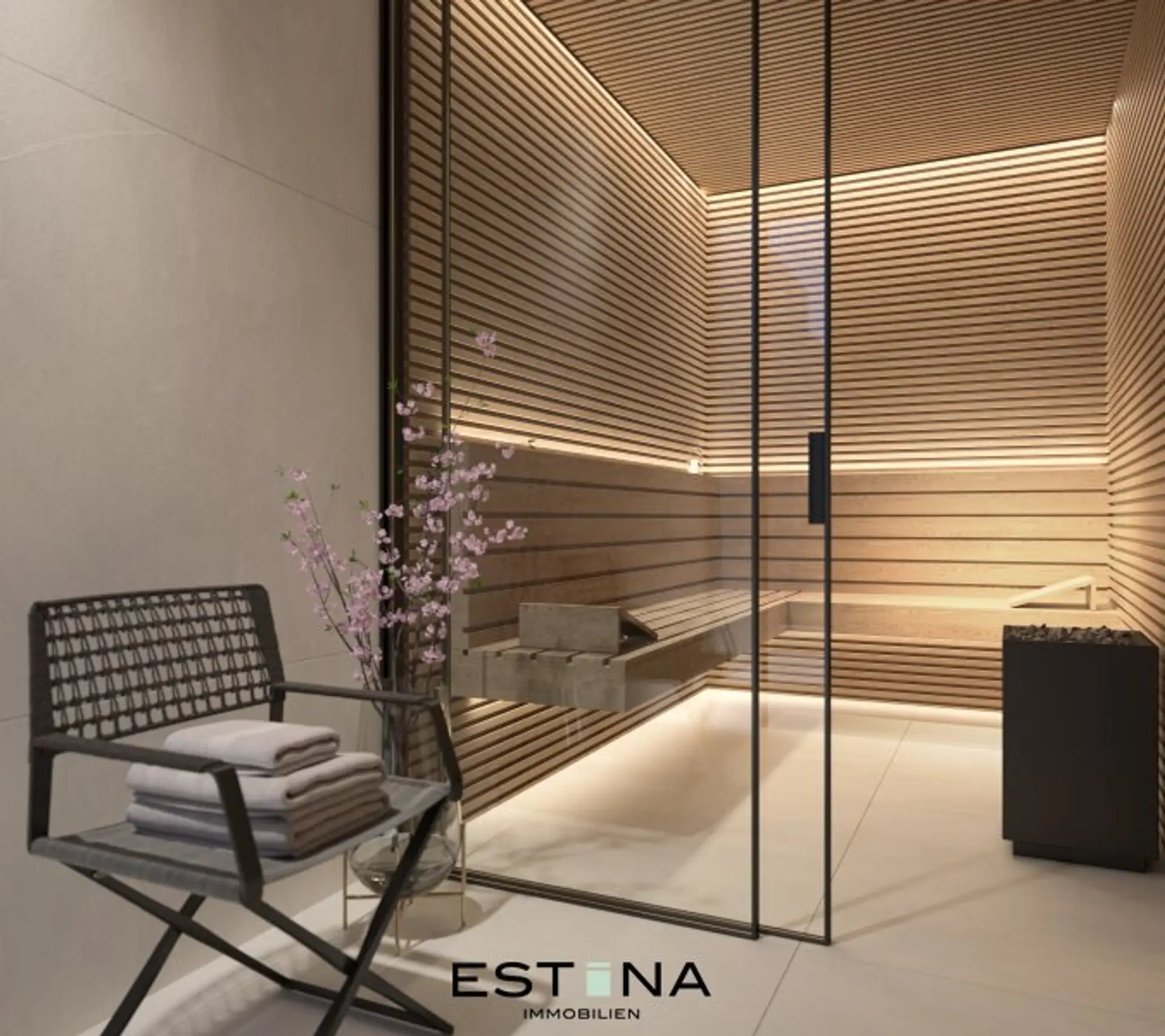 - Sauna mit angrenzenden Badezimmer (Walk-In Dusche und Waschbecken)