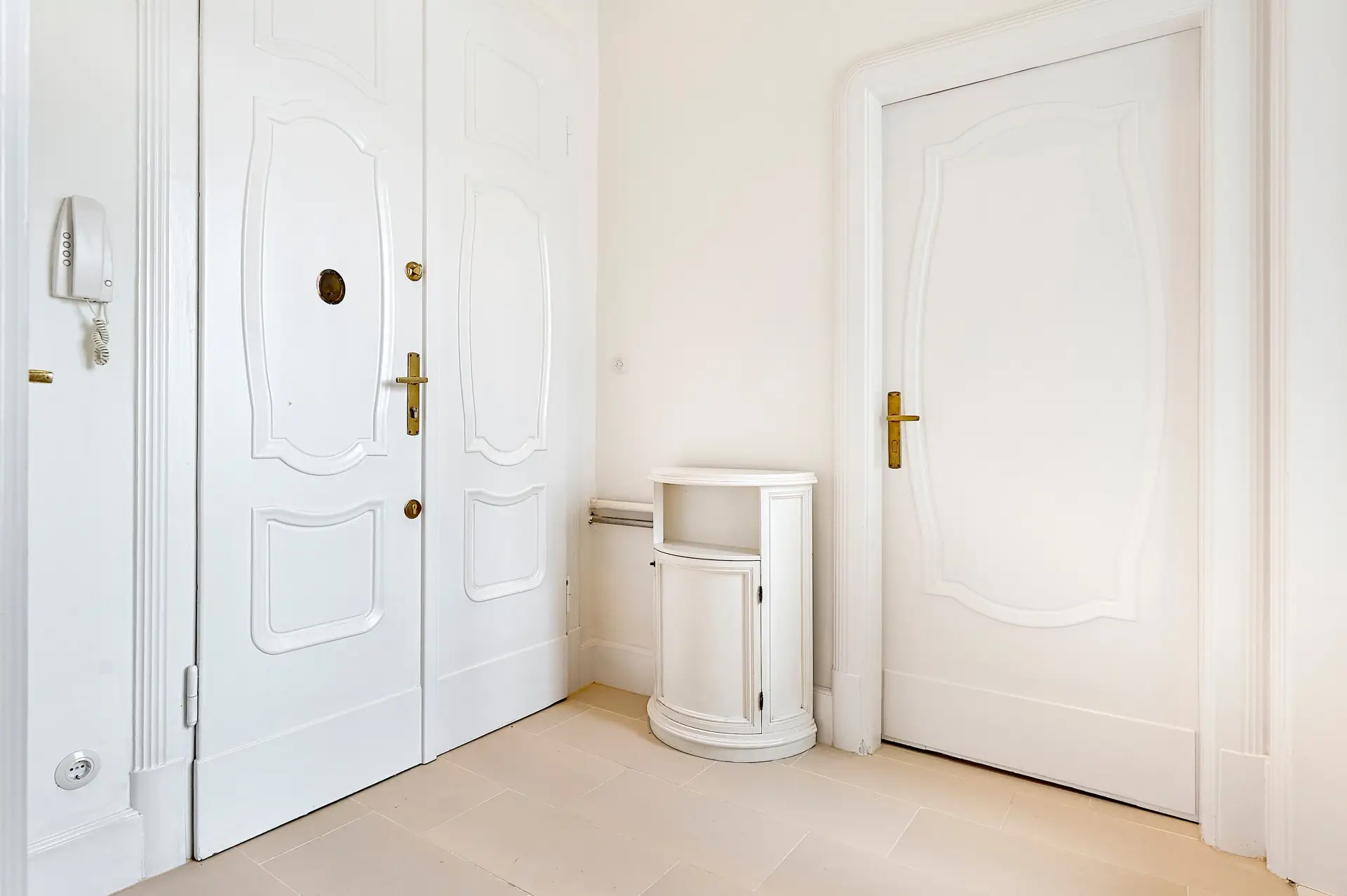 Ein großzügiges Vorzimmer – ideal als stilvoller Garderobenbereich nutzbar – bildet das Herzstück der Wohnung. Von hier aus sind alle vier Zimmer zentral begehbar. Ebenfalls erreichbar ist das extravagante Badezimmer, ausgestattet mit Badewanne, Dusche und Waschtisch. Ein zusätzlicher Abstell- bzw. Arbeitsraum ergänzt das durchdachte Raumkonzept und bietet praktischen Mehrwert.