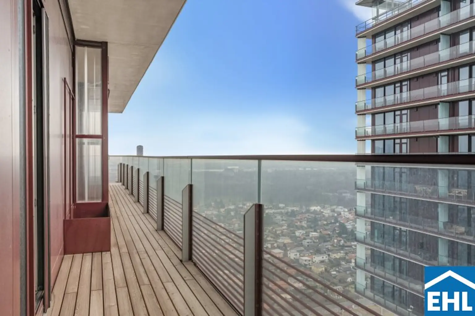 Lichtdurchflutet durch großzügige Fensterflächen eröffnet sie ein Panorama auf die Wiener Hausberge. Besonders in den Abendstunden, wenn die Sonne langsam hinter den Hügeln versinkt und den Himmel in warme Gold- und Rottöne taucht, entsteht ein beinahe magisches Schauspiel. Die großzügige Freifläche erweitert den Wohnraum ins Freie – perfekt für stille Momente über den Dächern der Stadt.