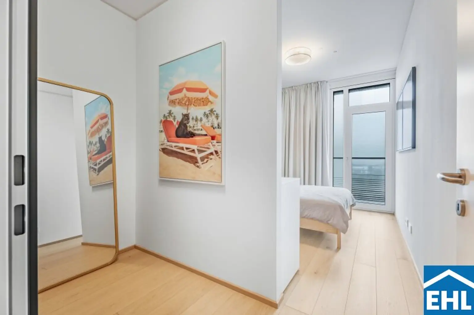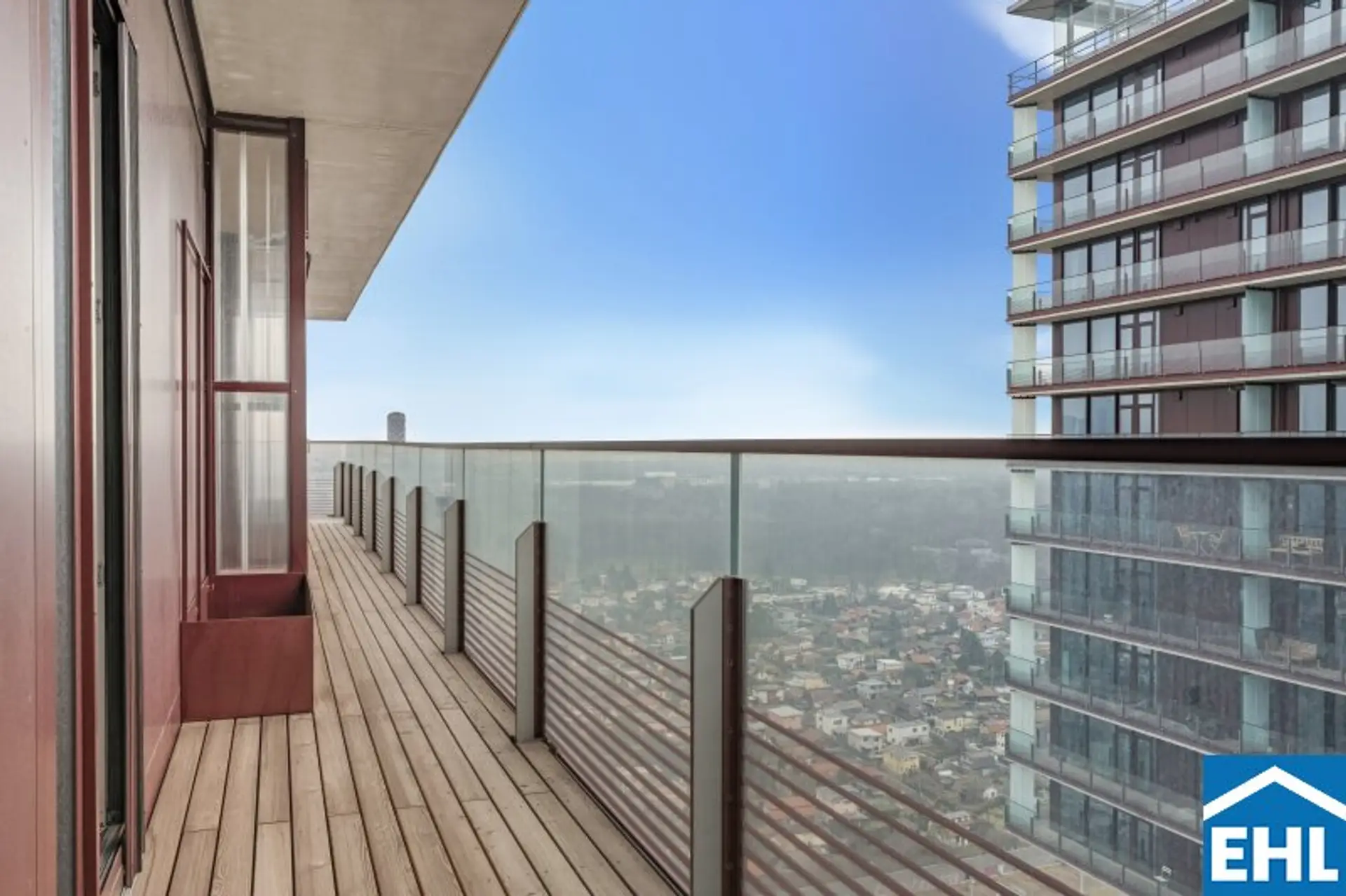 Mit ihrem Blick über den Grünen Prater verbindet sie urbanes Wohnen mit der beruhigenden Wirkung weiter Grünflächen. Die optische Leichtigkeit der Architektur, kombiniert mit der Offenheit der Räume, schafft ein Wohngefühl voller Weite und Eleganz. Auch hier sorgen große Fensterfronten und großzügige Außenflächen für ein beeindruckendes Zusammenspiel von Innen- und Außenraum.