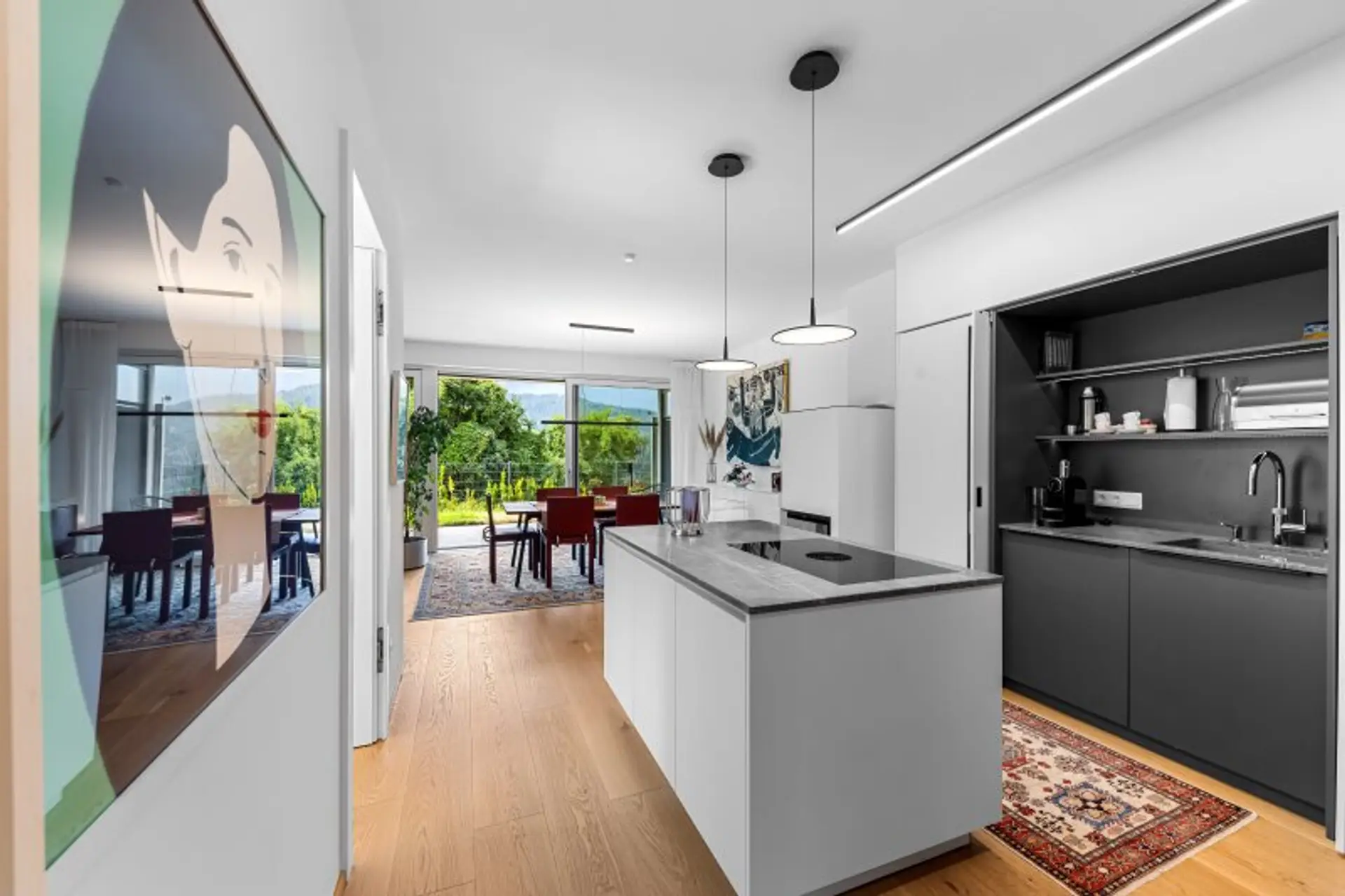 Eine sehr gute und individuell angepasste Raumaufteilung, eine großzügige Terrasse mit Blick auf den See und ins Bergpanorama mit einer zusätzlich begrünten Terrasse sowie die Parkmöglichkeiten auf den beiden eigenen Tiefgaragenplätzen (diese sind mit einem Preis von € 40.000,- mitzukaufen) garantieren eine sehr bequeme Nutzung dieses Luxusapartments.