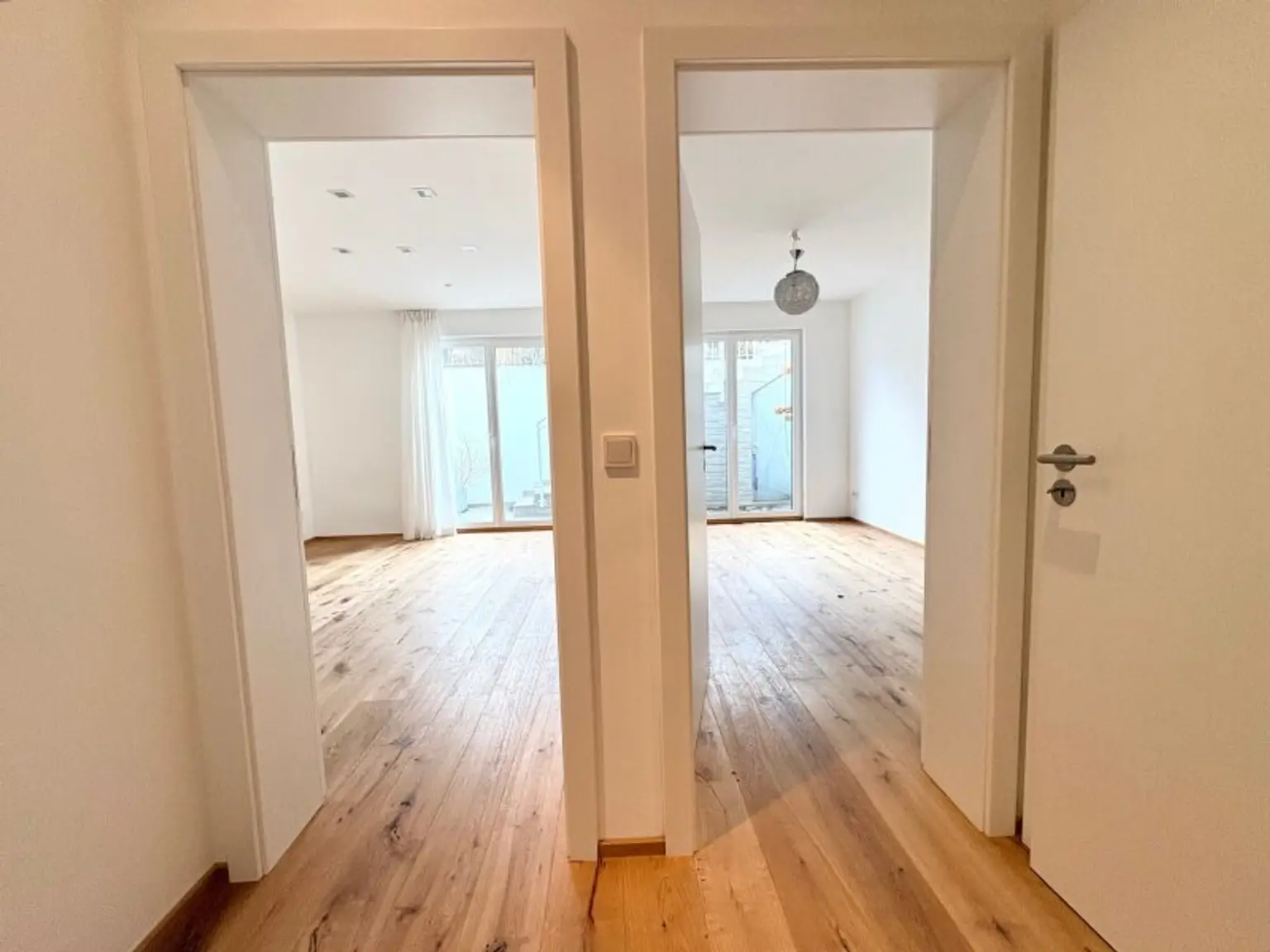 * Ausgang auf die große Lounge-Terrasse und Zugang zum Garten