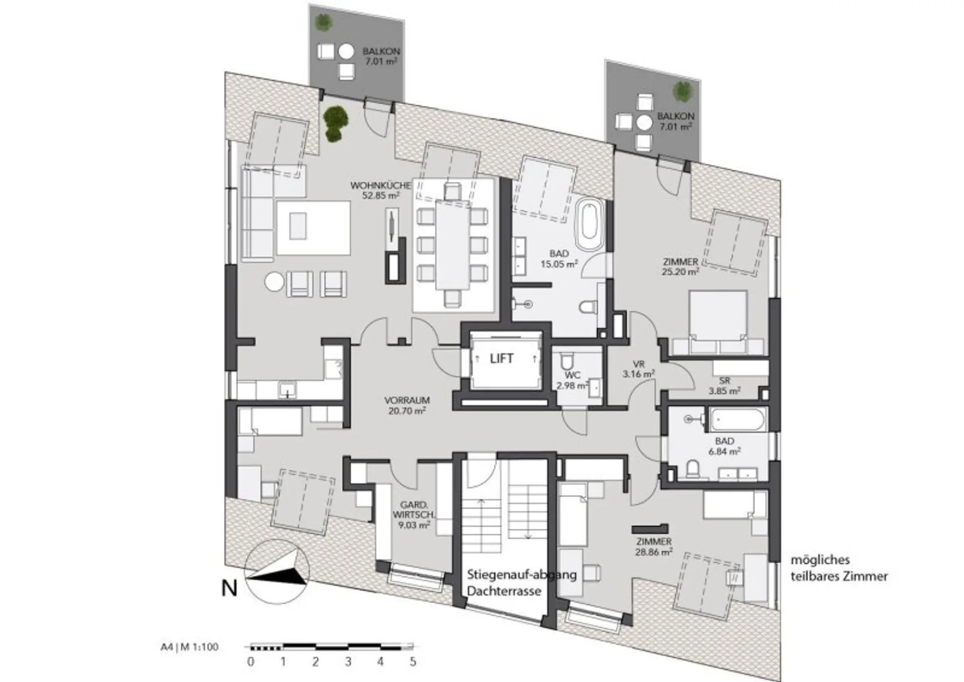 * 2 extra Balkone (Wohnbereich und Schlafzimmer) - jeweils ca. 7,01 m²