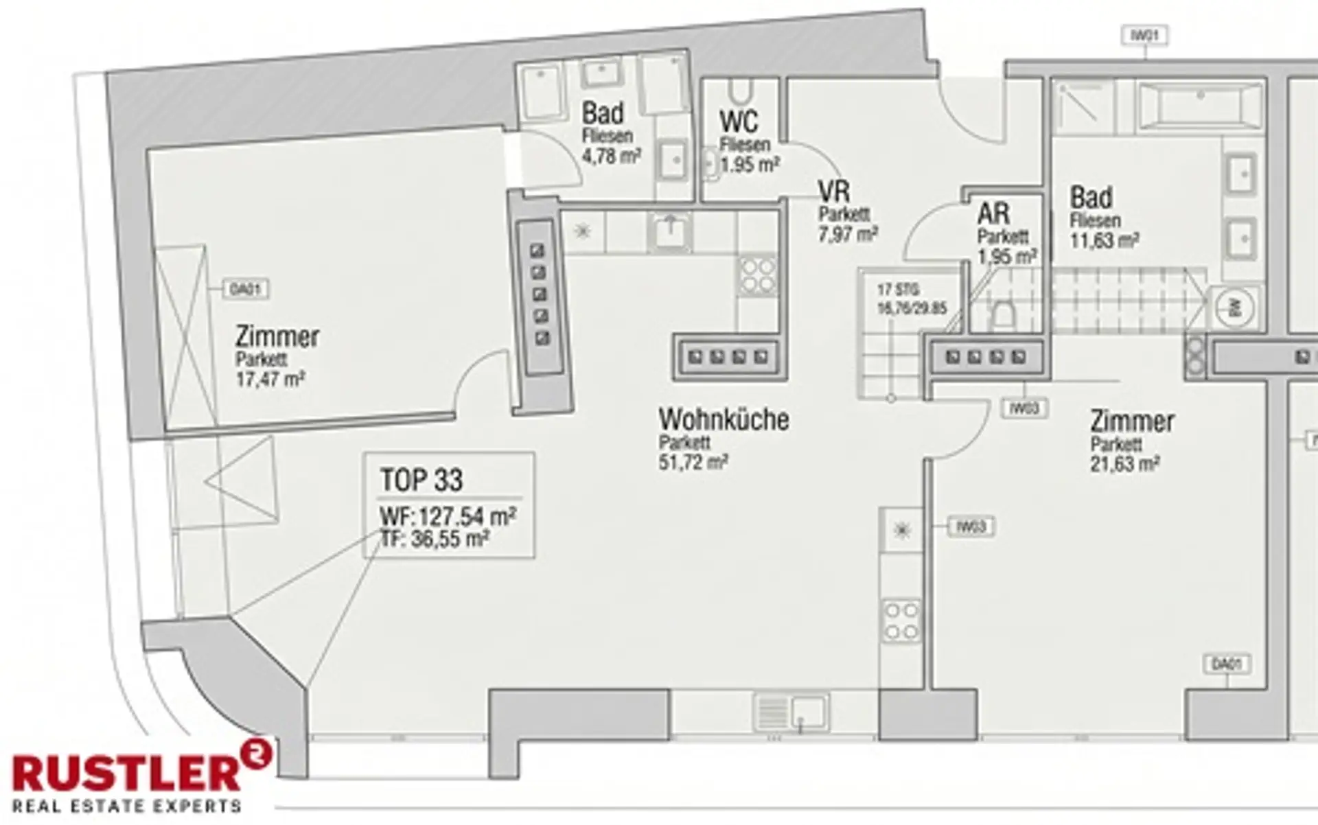 Projektbeschreibung In der Ratschkygasse 52, einem prachtvollen Altbauhaus in begehrter Lage des 12. Wiener Gemeindebezirks, entstehen aktuell auf zwei neu geschaffenen Dachgeschossebenen insgesamt 8 exklusive Wohnungen. Im Zuge des Dachgeschossausbaus wird die gesamte Liegenschaft umfassend saniert. Ein Lift wird eingebaut, neue Kellerabteile sowie ein Fahrradabstellraum geschaffen – eine nachhaltige und hochwertige Aufwertung des Hauses. Die Fertigstellung ist voraussichtlich für Ende Sommer 2026 geplant. Top 33 Bei dieser Einheit handelt es sich um eine 3-Zimmer-Dachgeschosswohnung mit Dachterrasse inkl. und atemberaubendem Blick über Wien sowie einem privaten Liftausstieg zur Dachterrasse. Besonderes Highlight ist die Gaube im Wohnzimmer, wodurch eine beeindruckende Raumhöhe von ca. 5 Metern vorhanden sein wird. Der durchdachte Grundriss bietet ausreichend Privatsphäre und eignet sich ideal für Paare oder kleine Familien. Da sich das Projekt aktuell in der Fertigstellungsphase befindet, besteht noch die Möglichkeit, individuelle Anpassungen (Grundriss und Ausstattung) vorzunehmen. Ausstattung: • Fußbodenheizung • Heizung & Warmwasser über energieeffiziente Luft-Wärmepumpe • Klimageräte • Hochwertige Echtholzparkettböden • Großformatige Fliesen in den Sanitärräumen • Wasser-, Strom- und Beleuchtungsauslässe auf den Freiflächen • Medienanschlüsse (UPC & A1) Eine detaillierte Bau- und Ausstattungsbeschreibung stellen wir Ihnen gerne auf Anfrage zur Verfügung. Sonderwünsche können derzeit noch berücksichtigt werden. Lagebeschreibung Die Liegenschaft befindet sich in der Ratschkygasse im 12. Wiener Gemeindebezirk – einer ruhigen und zugleich hervorragend angebundenen Wohnlage. Die Umgebung überzeugt durch hohe Lebensqualität sowie eine ausgewogene Mischung aus gewachsener Infrastruktur und urbanem Angebot. Zahlreiche Einkaufsmöglichkeiten, Cafés und Nahversorger sind bequem fußläufig erreichbar. Verkehrsanbindung: • Buslinien 8A, 9A und 36A in unmittelbarer Nähe • U6 (Bahnhof Meidling / Schedifkaplatz) in ca. 10–12 Gehminuten erreichbar • Straßenbahnlinien, Badner Bahn sowie Bahnhof Meidling (S-Bahn & Regionalzüge) sorgen für eine ausgezeichnete Anbindung in die Innenstadt und das Umland Erholungsgebiete wie Schloss Schönbrunn, der Schönbrunner Schlosspark, die Gloriette sowie das Schönbrunner Bad bieten vielfältige Freizeit- und Erholungsmöglichkeiten. Insgesamt präsentiert sich die Lage als äußerst attraktiv – eine perfekte Kombination aus Ruhe und urbaner Lebensqualität. Hinweise • Wir weisen auf ein wirtschaftliches Naheverhältnis (Doppeltätigkeit) hin. • Der Energieausweis wird vom Eigentümer beauftragt und nachgereicht. • Wir bitten um Verständnis, dass nur Anfragen mit vollständigen Kontaktdaten (Name, Telefonnummer und E-Mail-Adresse) bearbeitet werden können.