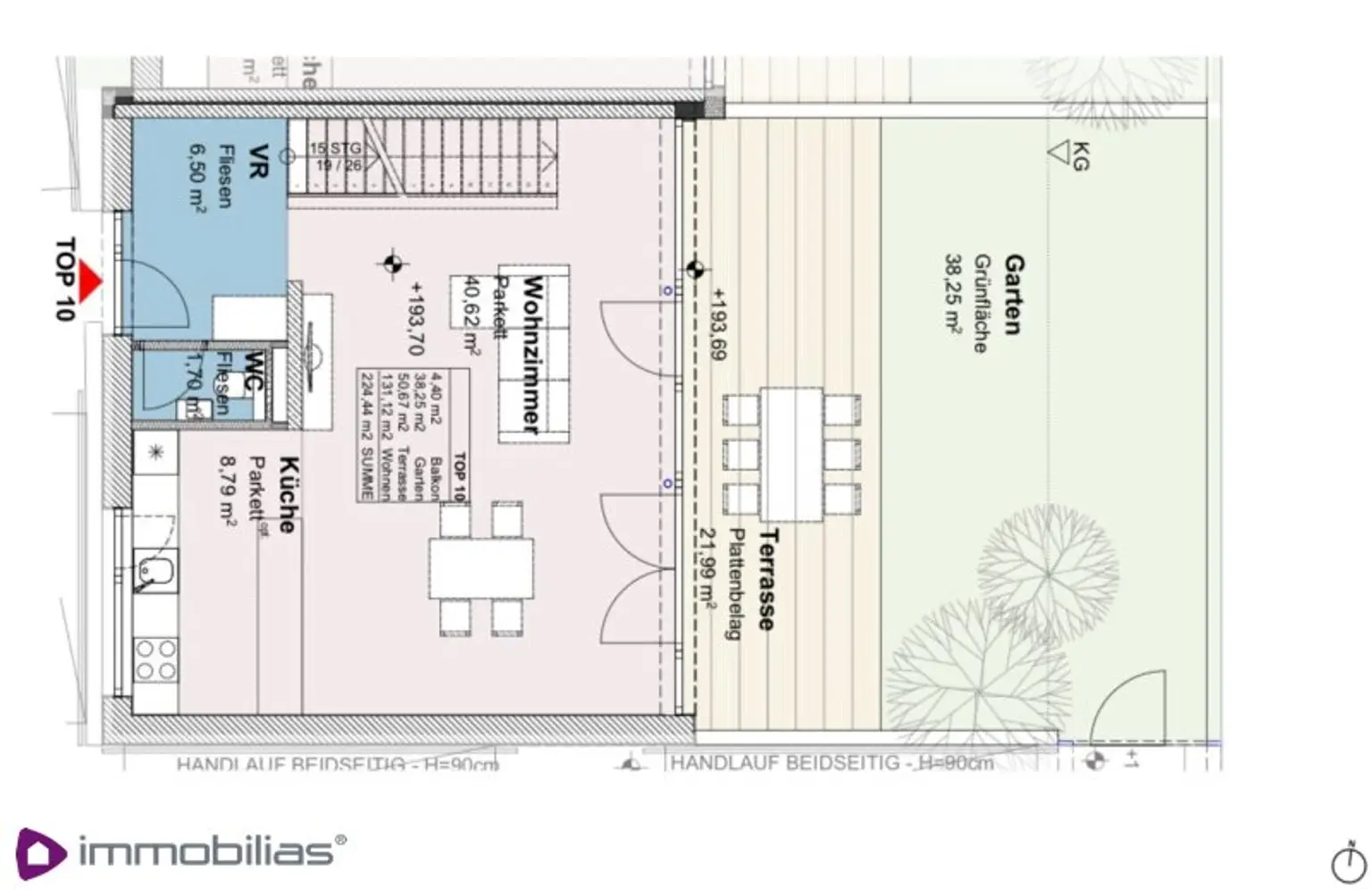 ca 131,12 m² Wfl; zzgl Außenflächen, ca 54,92 m²; zzgl Gartenanteil, ca 38,25 m²