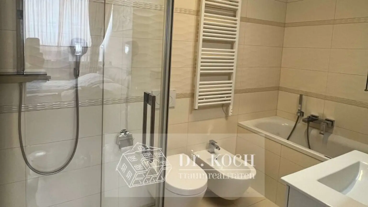 Sämtliche Sanitäranlagen und Fliesen sind im Premiumsegment ausgeführt: Villeroy & Boch, die Duschsysteme und Armaturen von Grohe.