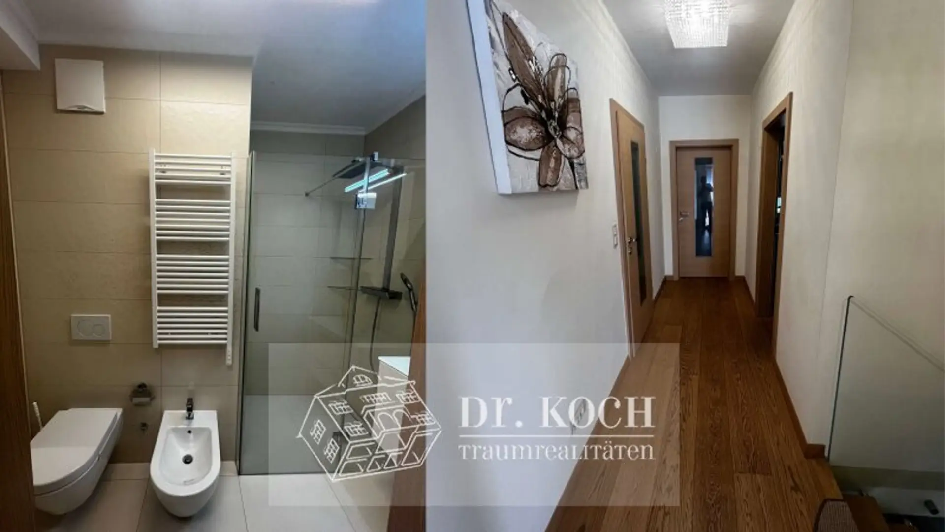 Die Wohnfläche beträgt ca. 181,44 m², hinzu kommen Terrassen mit einer Gesamtfläche von ca. 90,45 m² sowie ein geräumiges Kellerabteil mit 14 m².