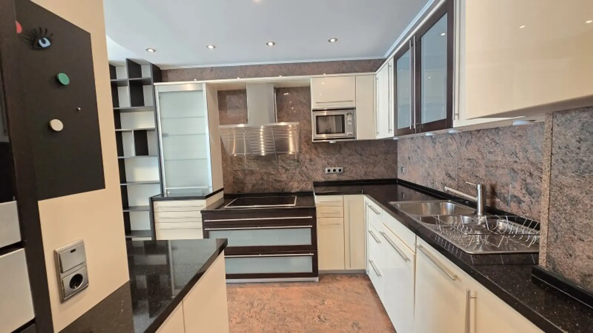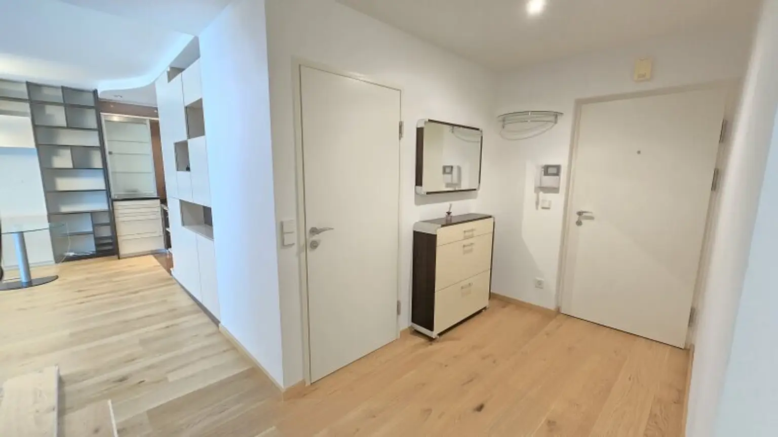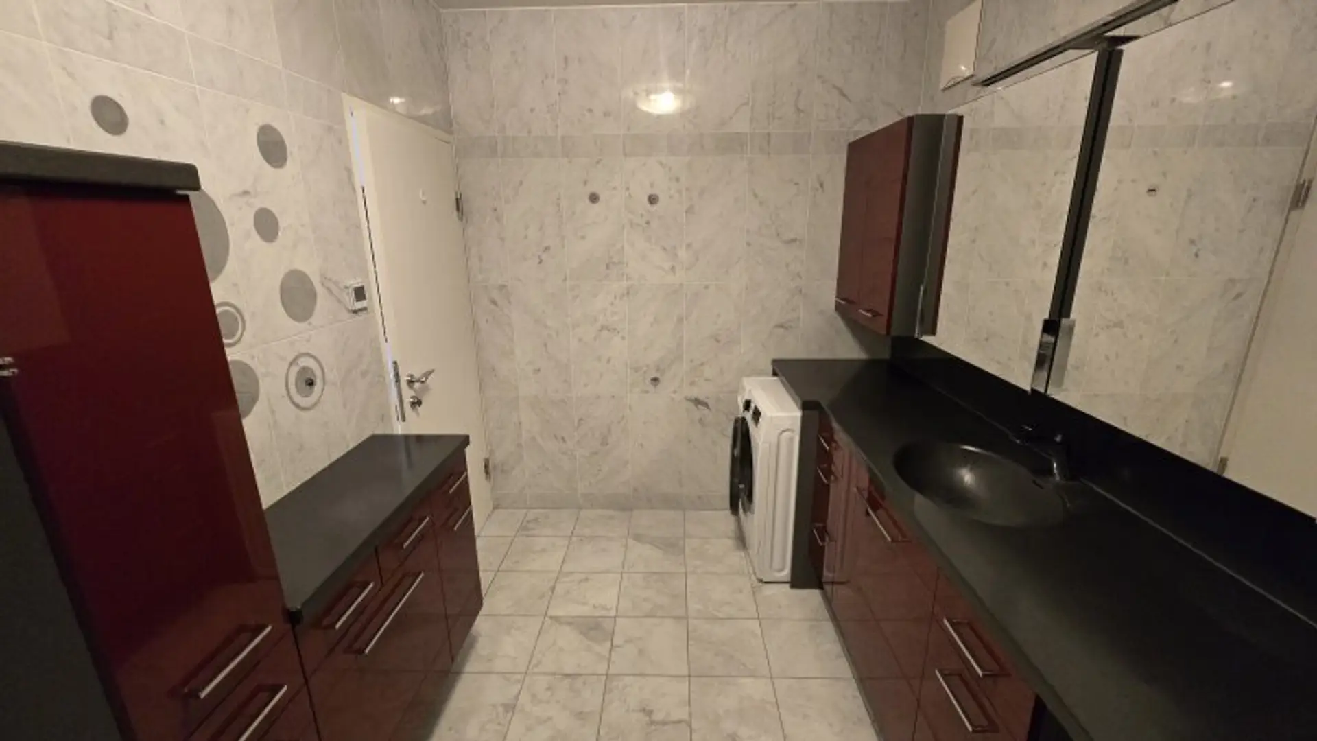 Die Wohnung ist mit Eiche Parkettböden, Fußbodenheizung, Mobile Klimaanlage mit Fernbedienung, Hauszentralheizung, 3-fach verglaste Frontglas Fenster, die Topmodernen und erlesenen Badezimmer mit Wanne, Spiegel, hochwertige Fliesen, Marken Sanitärausstattung, Waschmaschine, Handtuchtrockner,
