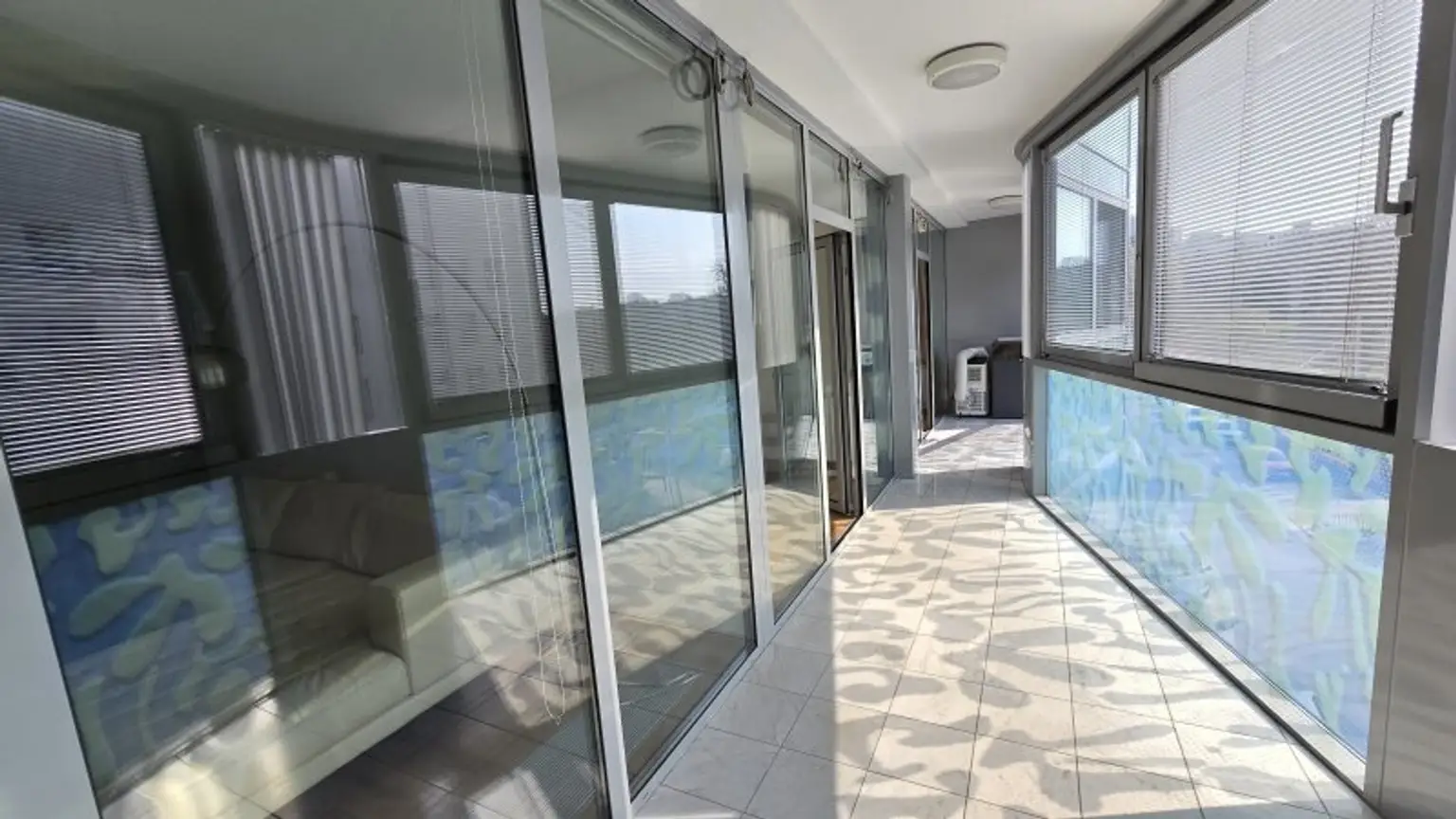 Vom Vorraum sind alle Räumlichkeiten zentral begehbar, Linker Hand befindet sich das Badezimmer mit Badewanne, ein Abstellraum sowie zwei Schlafzimmer 13m2 und 16m2 sowie eine separate Toilette und alle drei Zimmer haben den direkten Zugang zum Balkon (Beheizbare Wintergarten).