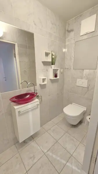 eine separate Toilette mit Handwaschbecken auch hier die Ausstattung vom Feinsten. Eine Einbauküche inkl. Marken Geräte, Raumthermostat, Terrassen mit Granitsteinplatte, Wasserhahn, Strom-Steckdose, sehr gute Isolierung. Video- Gegensprechanlage, Wohnungseingangstür ist Brandschutz- Sicherheitstüre mit 6-fach Verriegelung, Türspion mit Namensschild und Sicherheitsbeschlag- Knopf/Drücker ausgestattet. Vollwärmeschutzfassade. Aufzug ist Barrierefrei, behindertengerecht.